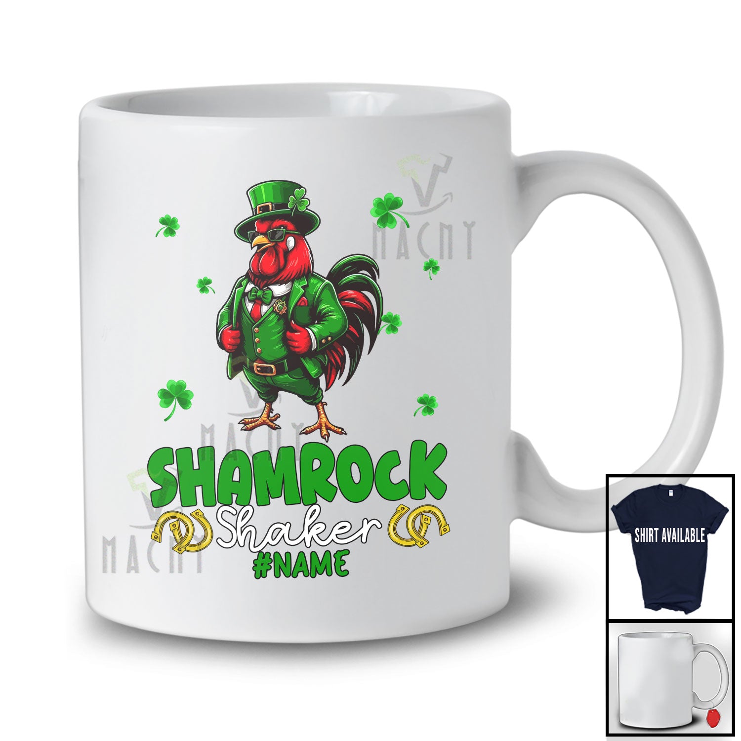 • Personalized Custom Name Shamrock Shaker; Humorous St. Patrick's Day Leprechaun Chicken; Farmer T-Shirt. This cotton t-shirt is a durable staple product with a classic fit. One of the most popular items, it has a relaxed style made for everyday and casual wear.