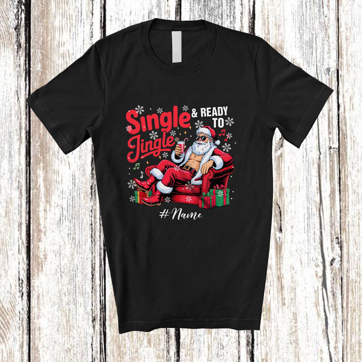 Personalized Custom Name Single And Ready To Jingle; Cheerful Christmas Santa Drinking Cocktail T-Shirt