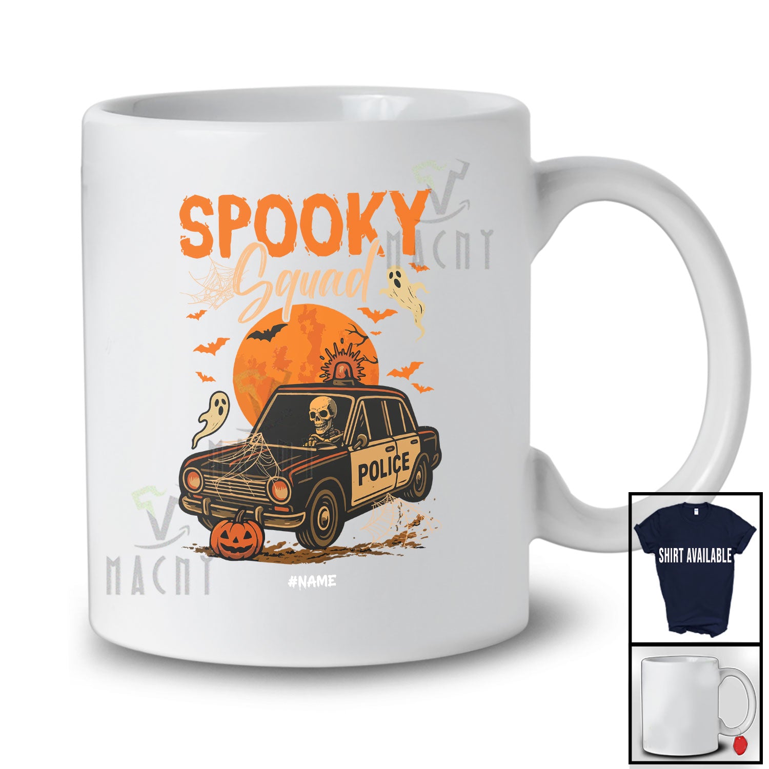 new MacnyStore - Personalized Custom Name Skeleton Driving Police Car; Humorous Halloween Moon Driver T-Shirt – Macnystore