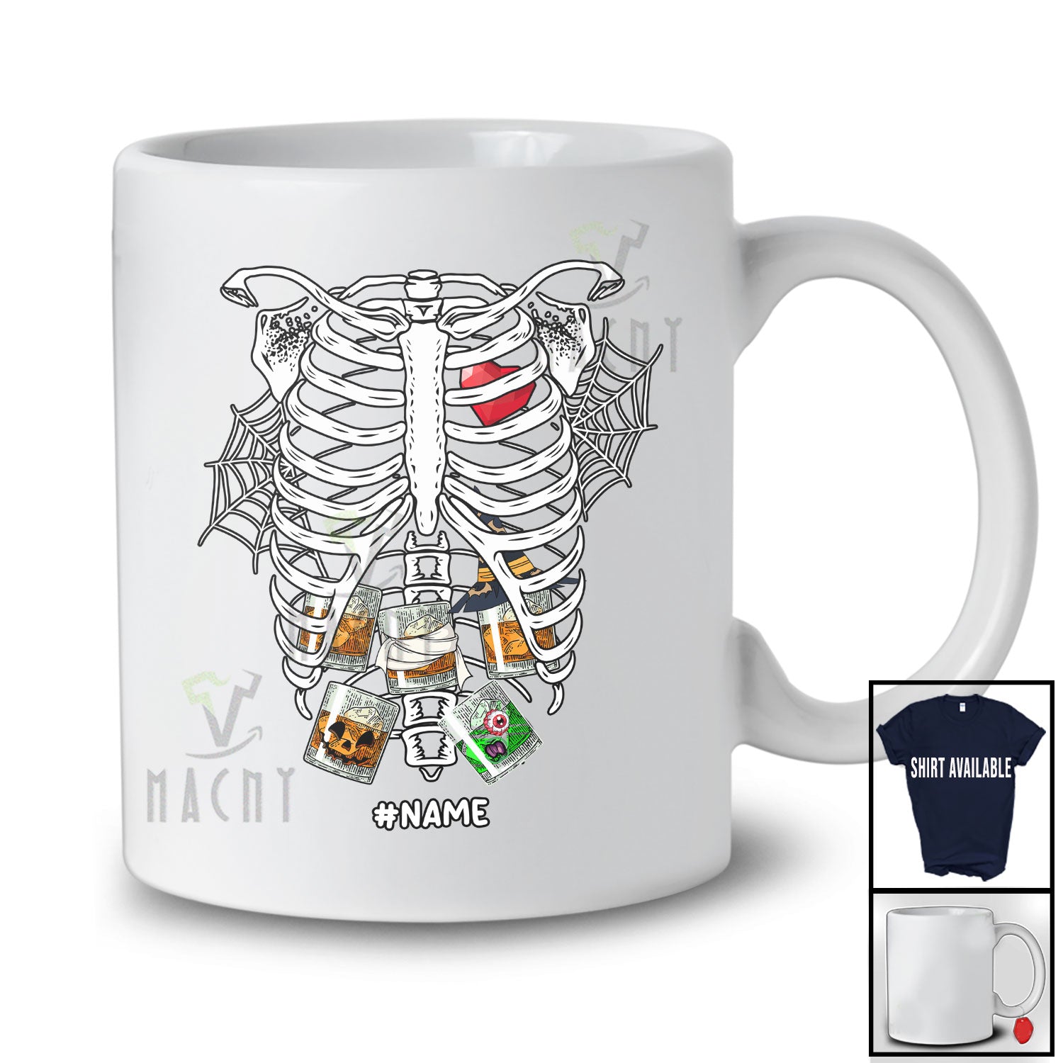 new MacnyStore - Personalized Custom Name Skeleton Rib Cage With Whiskey Inside; Joyful Halloween X-Ray Drinking T-Shirt – Macnystore
