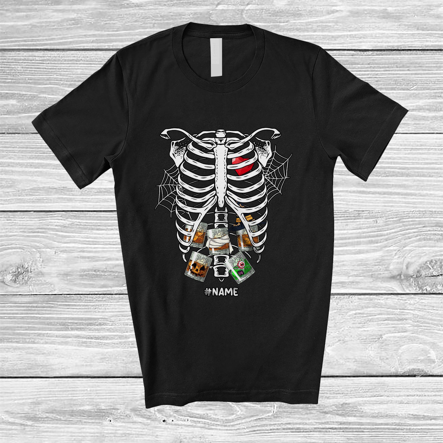 Personalized Custom Name Skeleton Rib Cage With Whiskey Inside; Joyful Halloween X-Ray Drinking T-Shirt