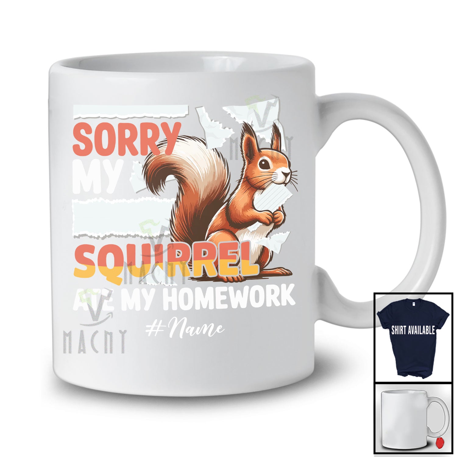 Personalized Custom Name Sorry My Squirrel Ate My Homework; Lovely Squirrel Animal T-Shirt. This cotton t-shirt is a durable staple product with a classic fit. One of the most popular items, it has a relaxed style made for everyday and casual wear.