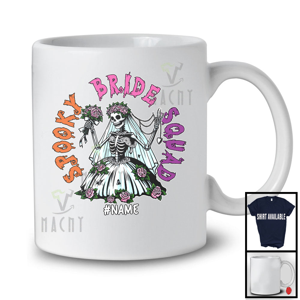 Personalized Custom Name Spooky Bride Squad; Joyful Halloween Bachelorette Skeleton Women; Couple T-Shirt