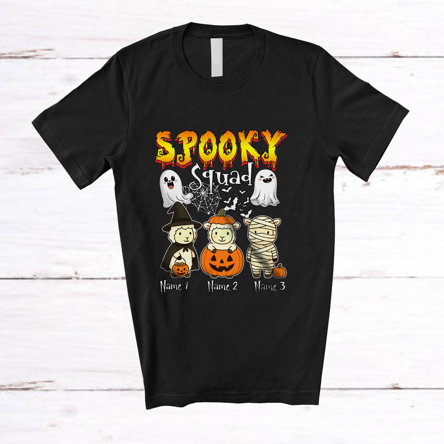 Personalized Custom Name Spooky Squad; Horror Halloween Three Sheep Witch Boo Ghost Farmer T-Shirt