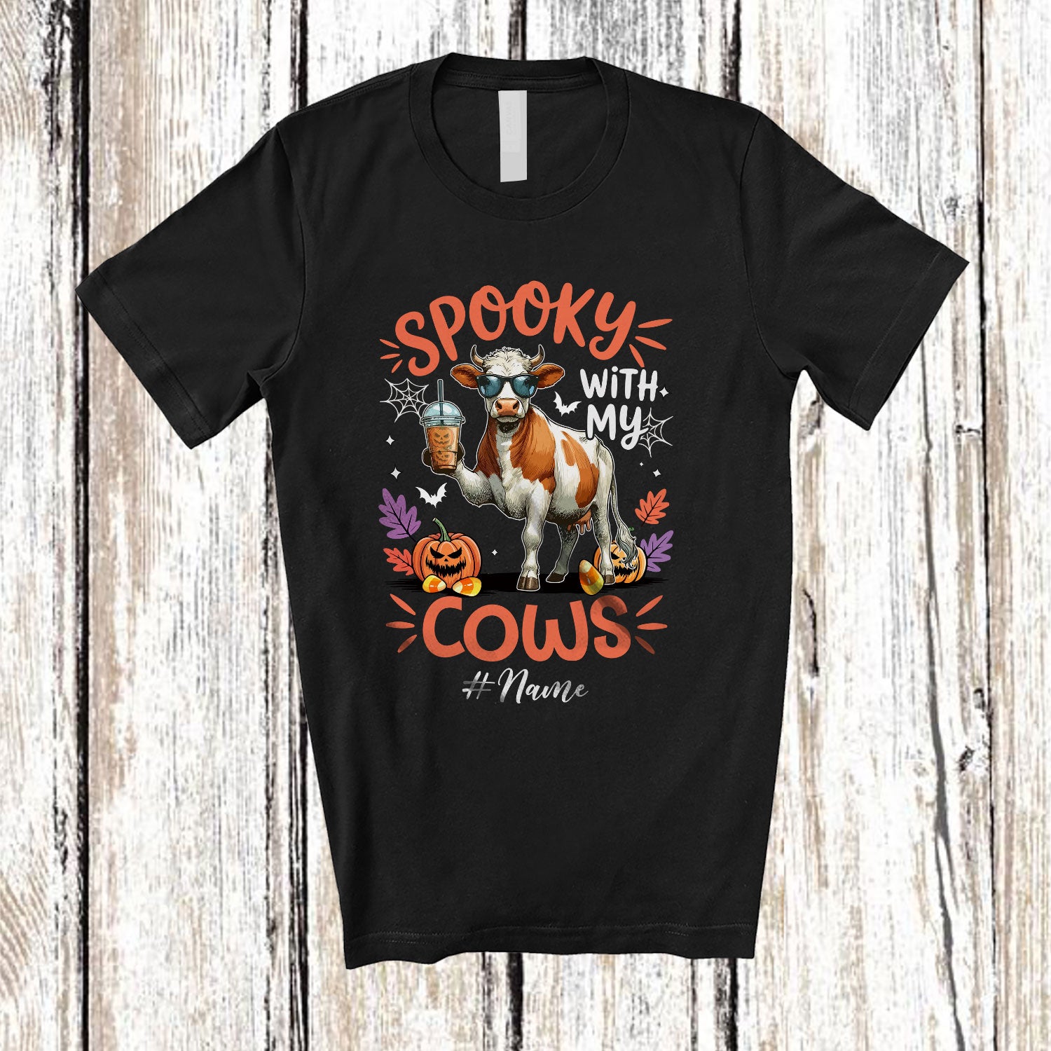 Personalized Custom Name Spooky With My Cows; Amazing Halloween Cow Sunglasses Coffee T-Shirt