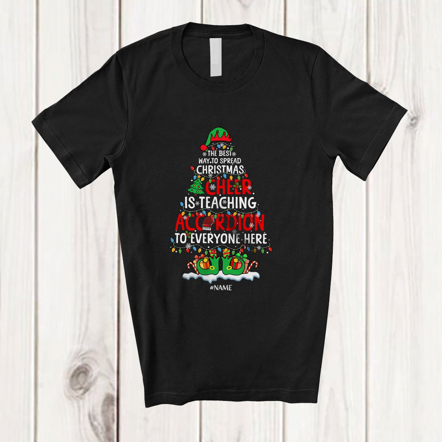 Personalized Custom Name Spread Christmas Cheer Is Teaching Accordion; Joyful Teacher Musician T-Shirt