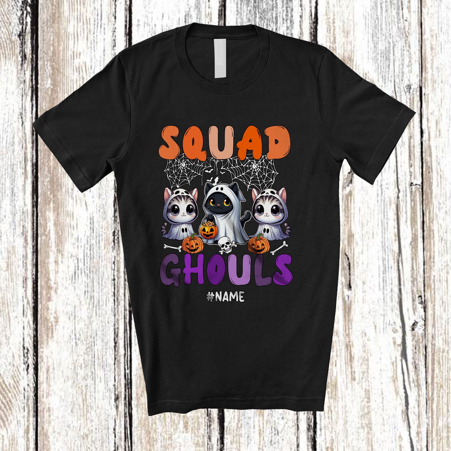 Personalized Custom Name Squad Ghouls; Lovely Halloween Three Cat Boo Ghost Cosplay; Farmer T-Shirt