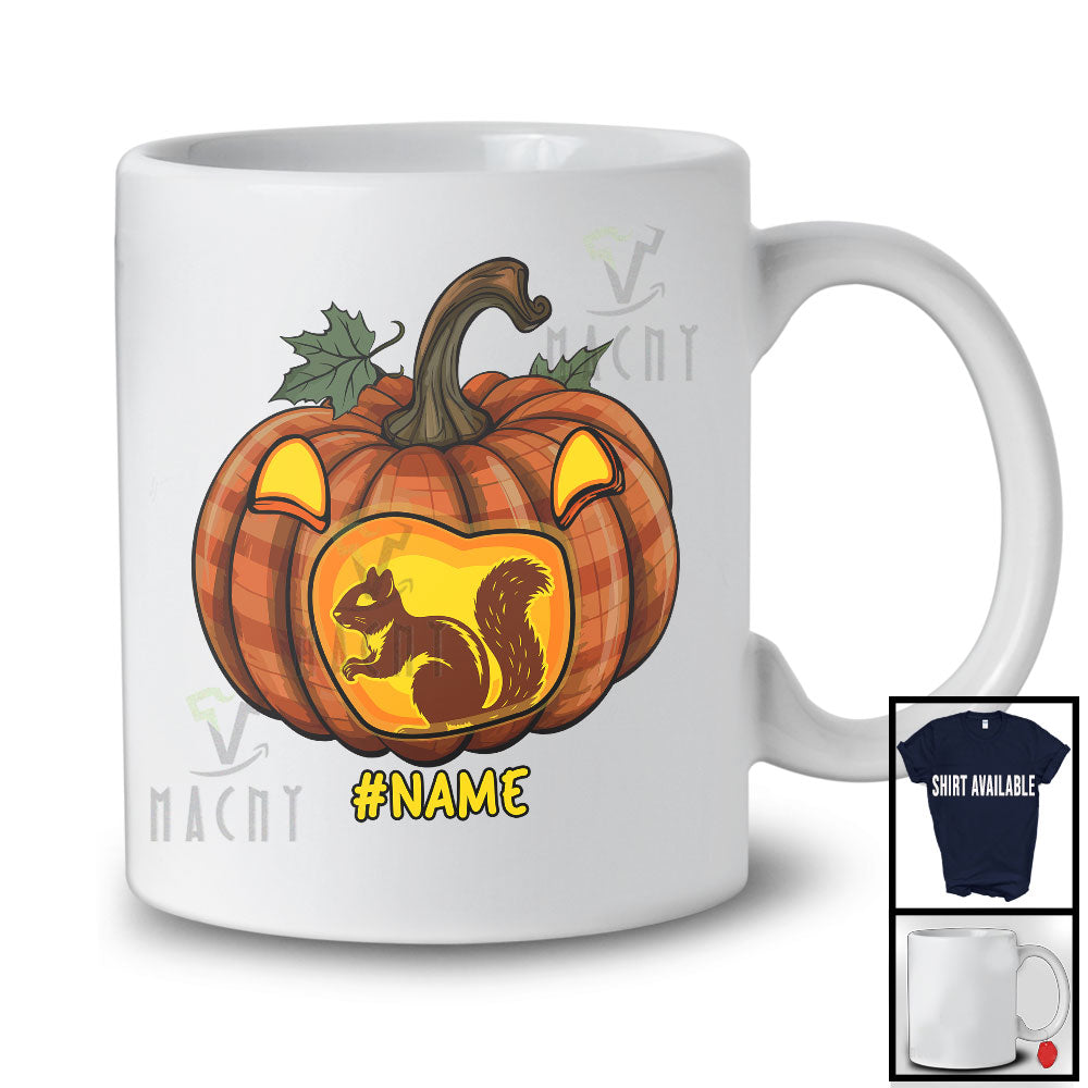 Personalized Custom Name Squirrel In Plaid Pumpkin; Creepy Halloween Animal Family T-Shirt