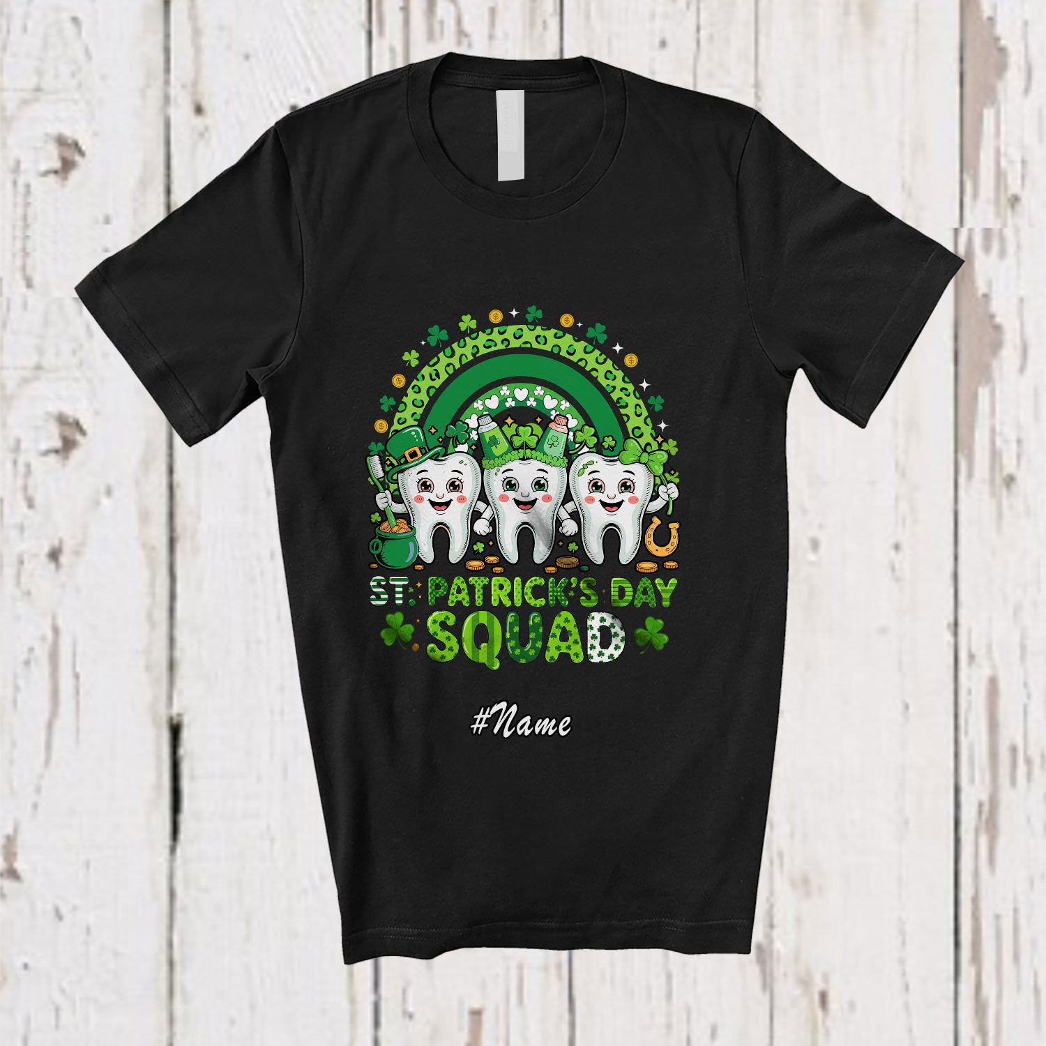 Personalized Custom Name St. Patrick's Day Squad; Lovely Rainbow Three Teeth; Dental Dentist T-Shirt