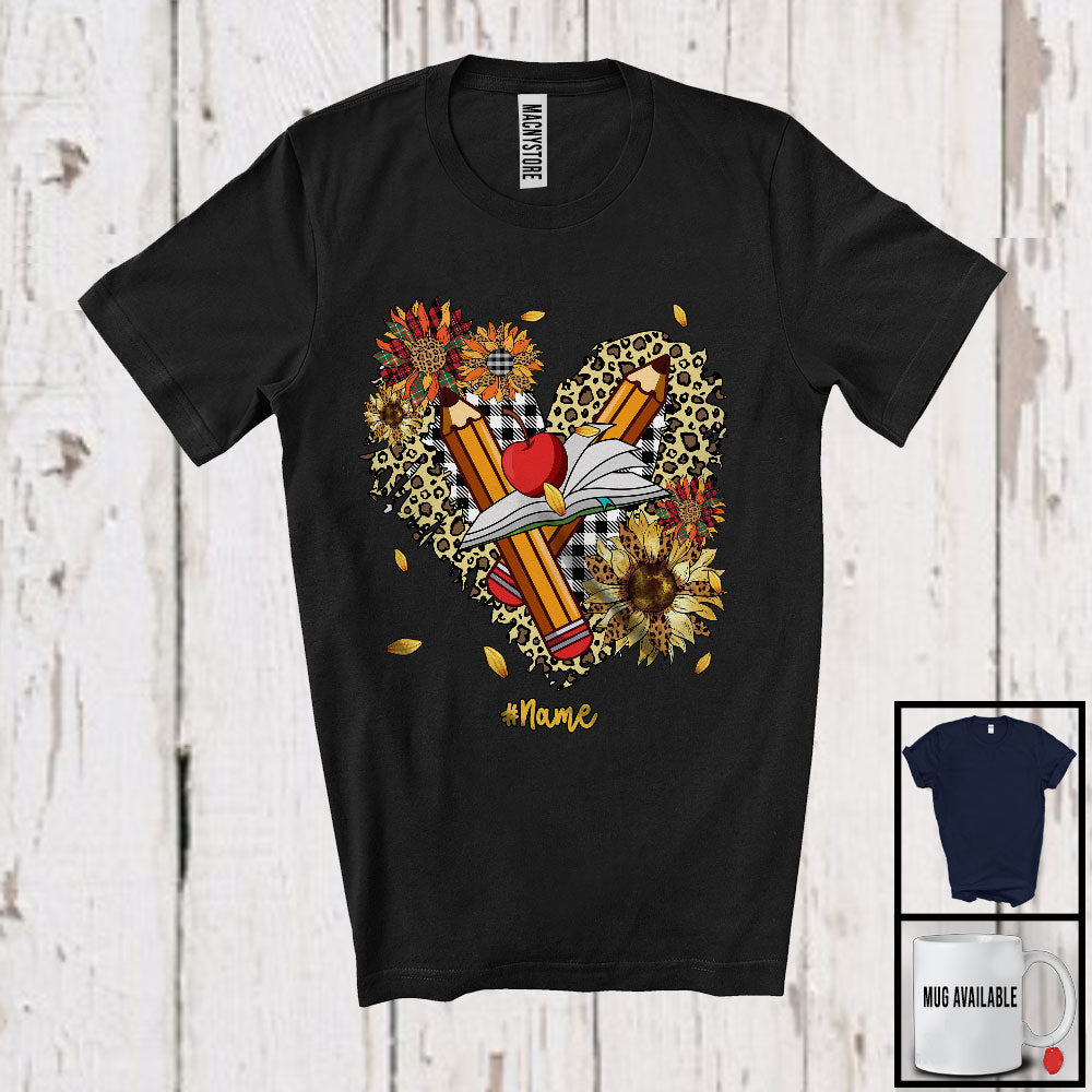 new MacnyStore - Personalized Custom Name Teacher, Lovely Leopard Heart Shape Sunflowers, Teacher Group T-Shirt – Macnystore