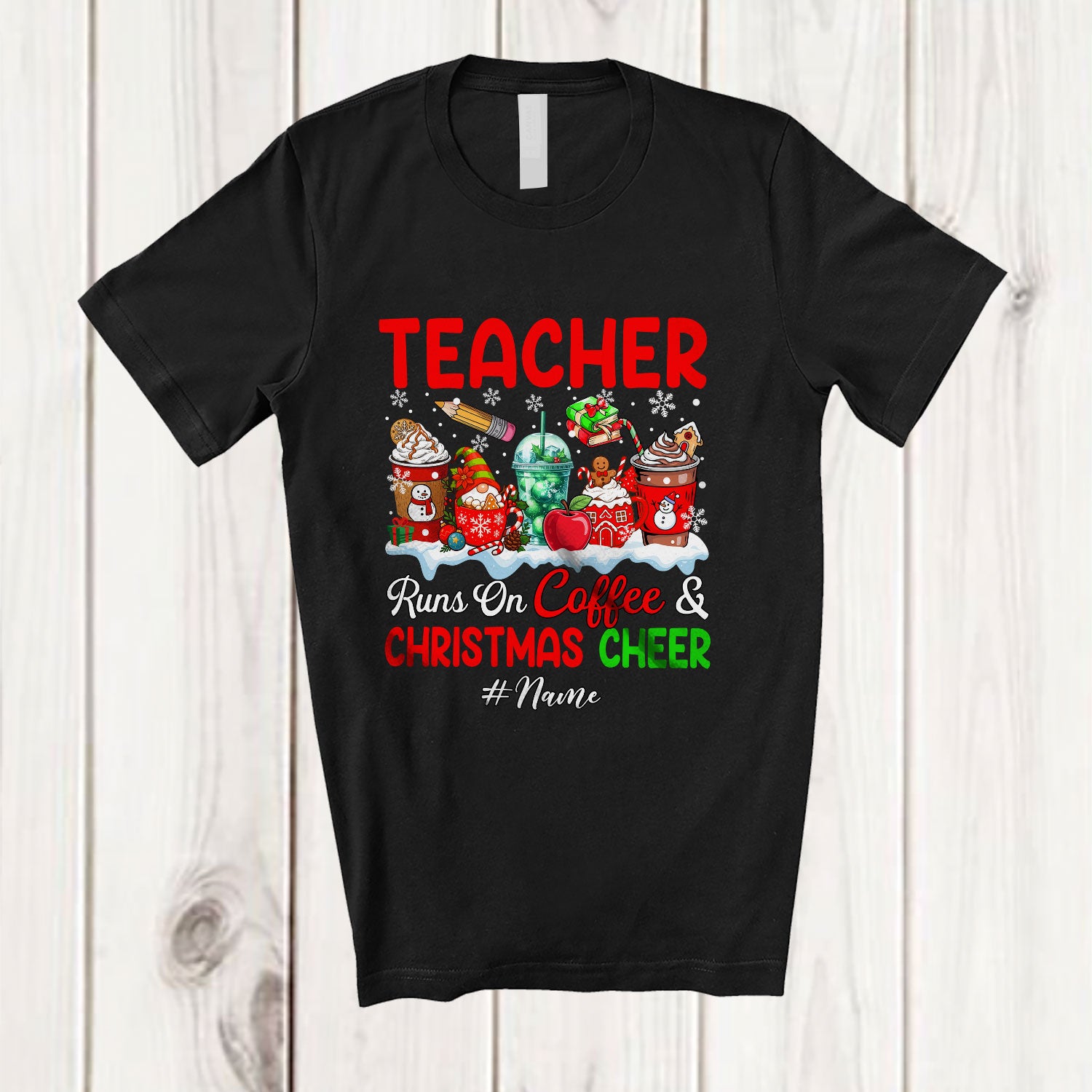 Personalized Custom Name Teacher Runs On Coffee Christmas Cheer; Lovely Snow Jobs T-Shirt