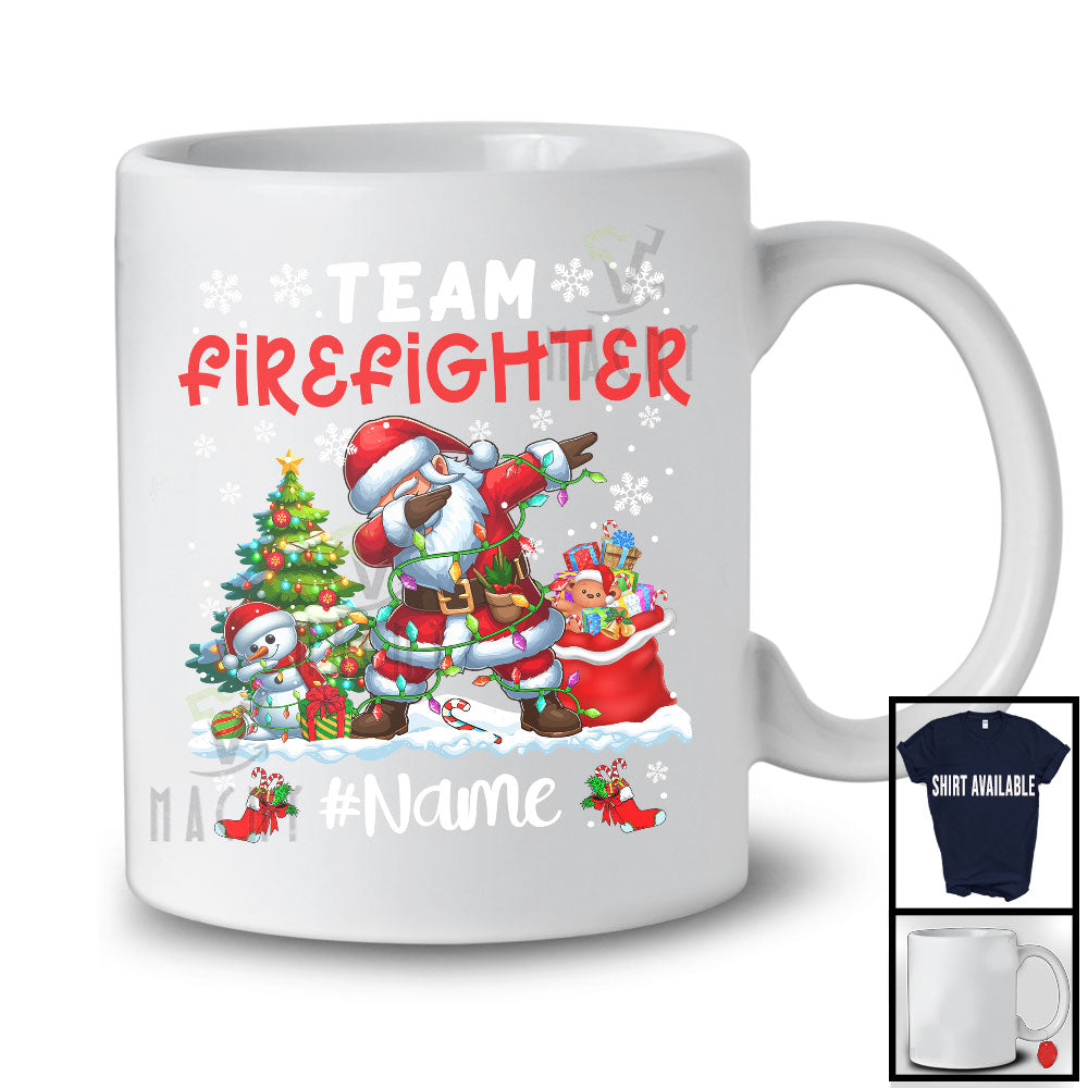 Personalized Custom Name Team Firefighter, Joyful Christmas Santa Snowman Dabbing, Careers T-Shirt