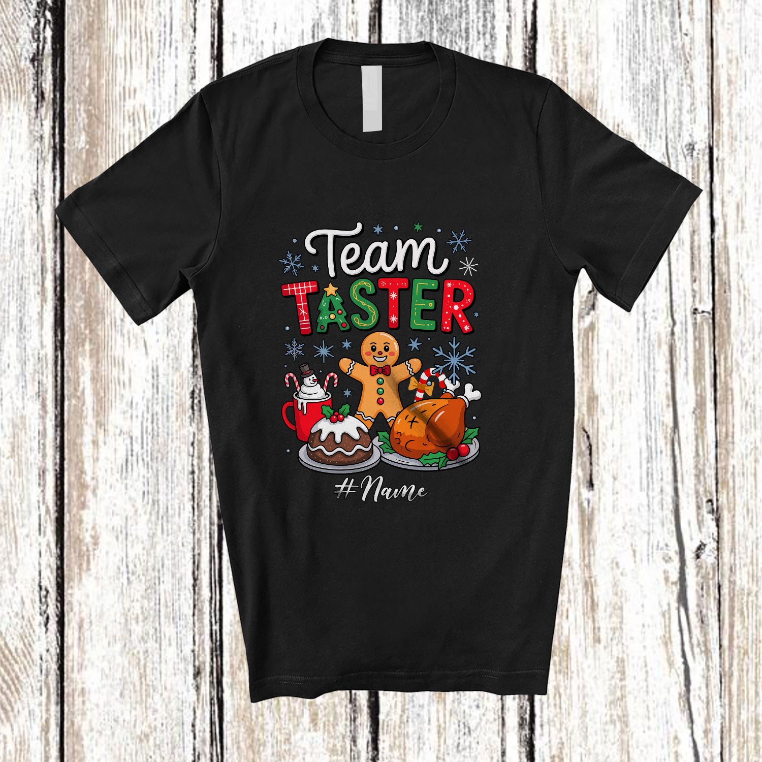 Personalized Custom Name Team Taster; Awesome Christmas Dinner Gingerbread Family T-Shirt. This cotton t-shirt is a durable staple product with a classic fit. One of the most popular items, it has a relaxed style made for everyday and casual wear.