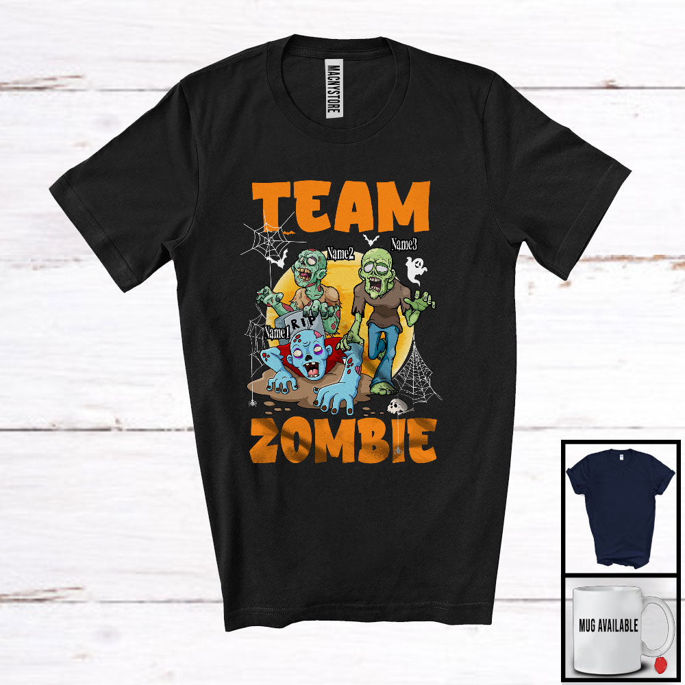 Personalized Custom Name Team Zombie; Lovely Halloween Three Scary Zombie Squad; Family Group T-Shirt
