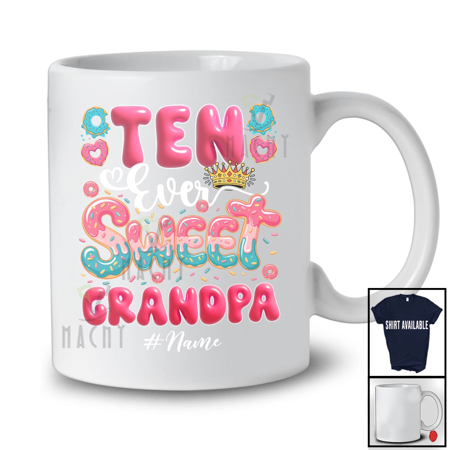 The Personalized Custom Name Ten Ever Sweet Grandpa; Joyful 10th Birthday Donut Lover; Girls Family T-Shirt destined to impress, and priced at only $12.95, for a limited time.