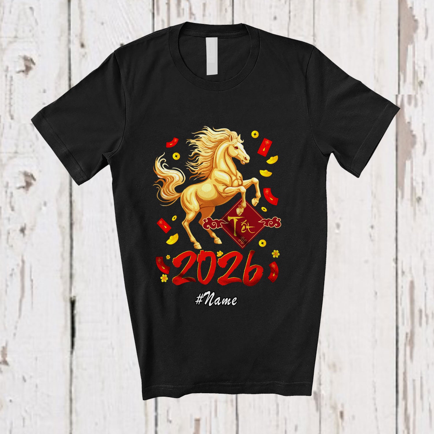 Personalized Custom Name Tet 2026; Amusing Vietnamese Lunar New Year Horse Lover Family T-Shirt