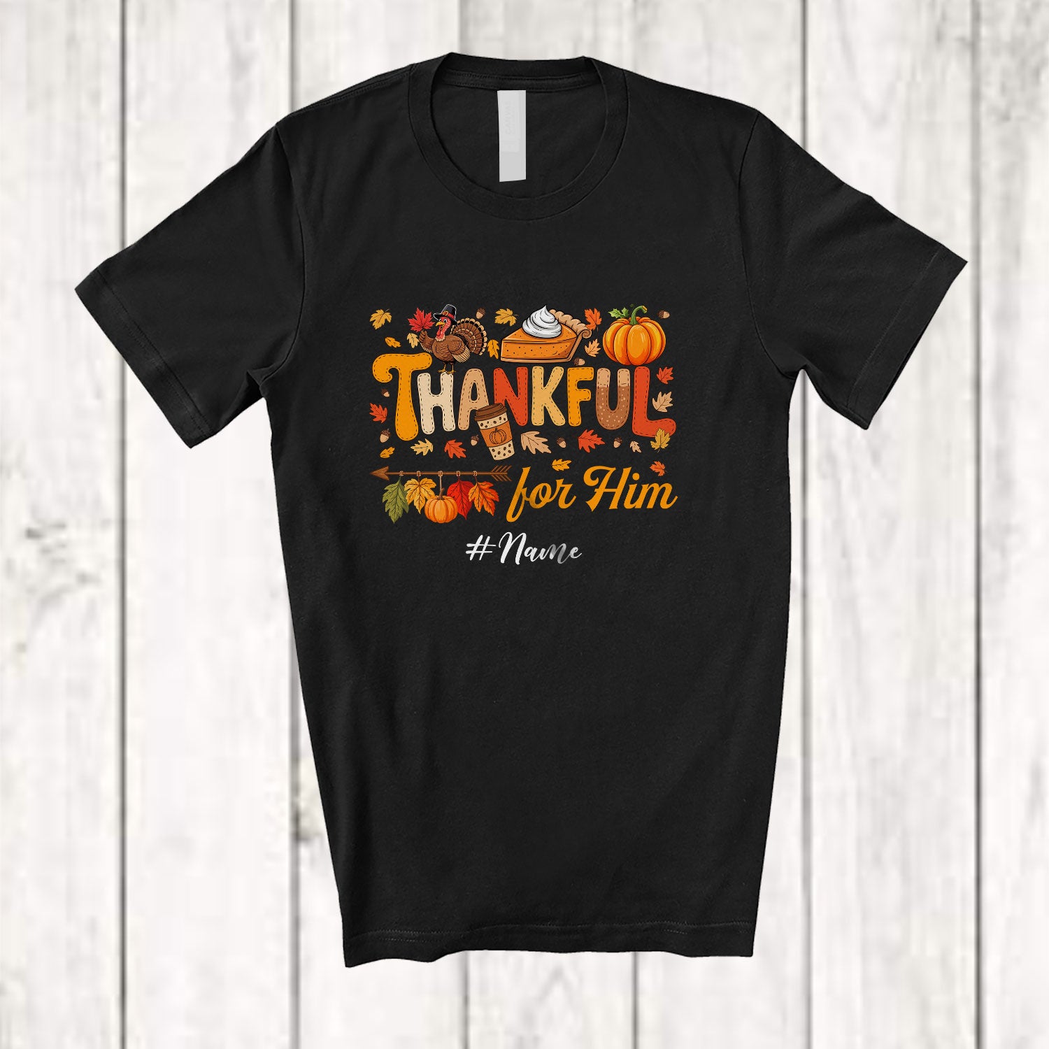 Personalized Custom Name Thankful For Him; Happy Thanksgiving Fall Pumpkin Pie Turkey; Couple T-Shirt