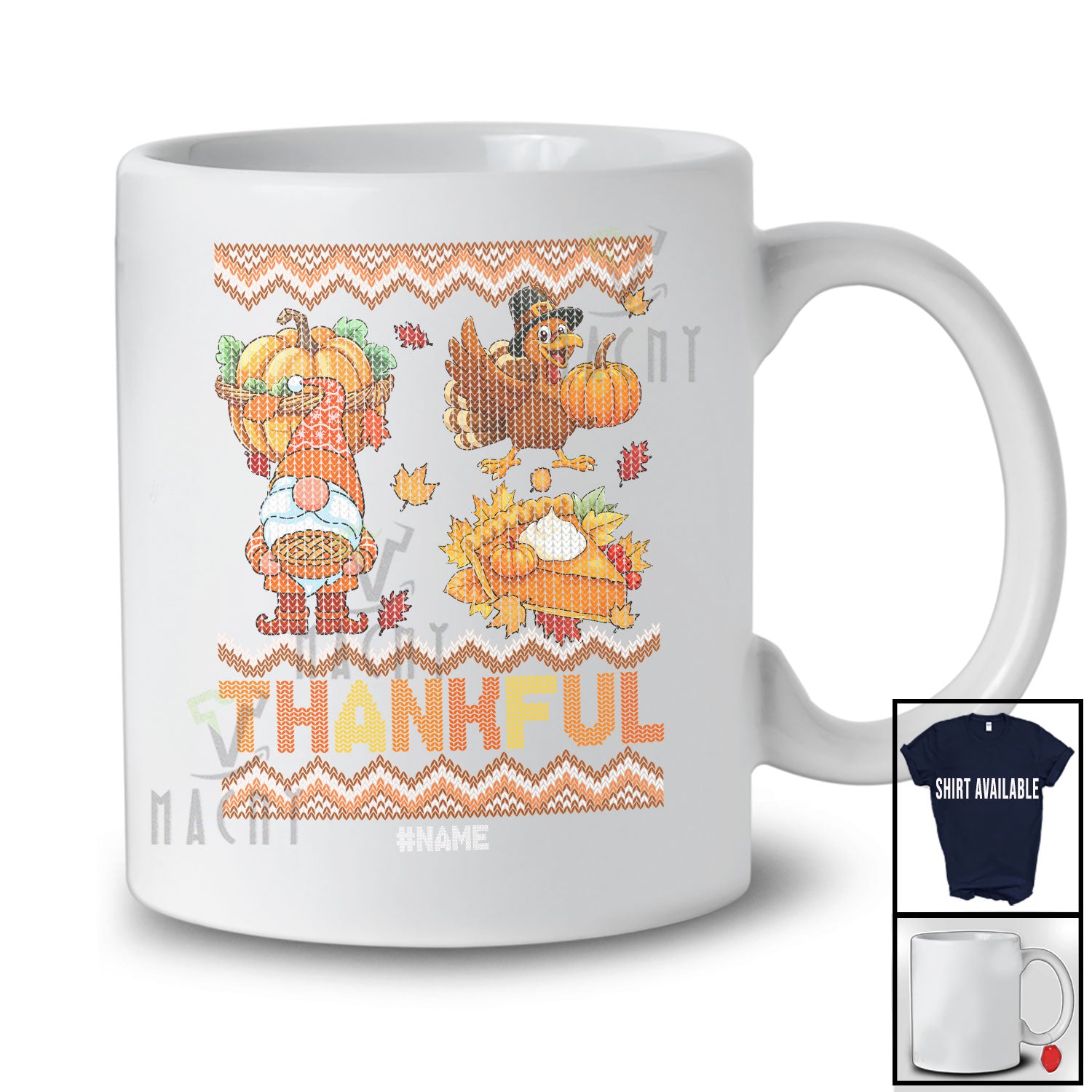 Personalized Custom Name Thankful; Lovely Thanksgiving Sweater Gnome Turkey Pumpkin Pie T-Shirt. This cotton t-shirt is a durable staple product with a classic fit. One of the most popular items, it has a relaxed style made for everyday and casual wear.