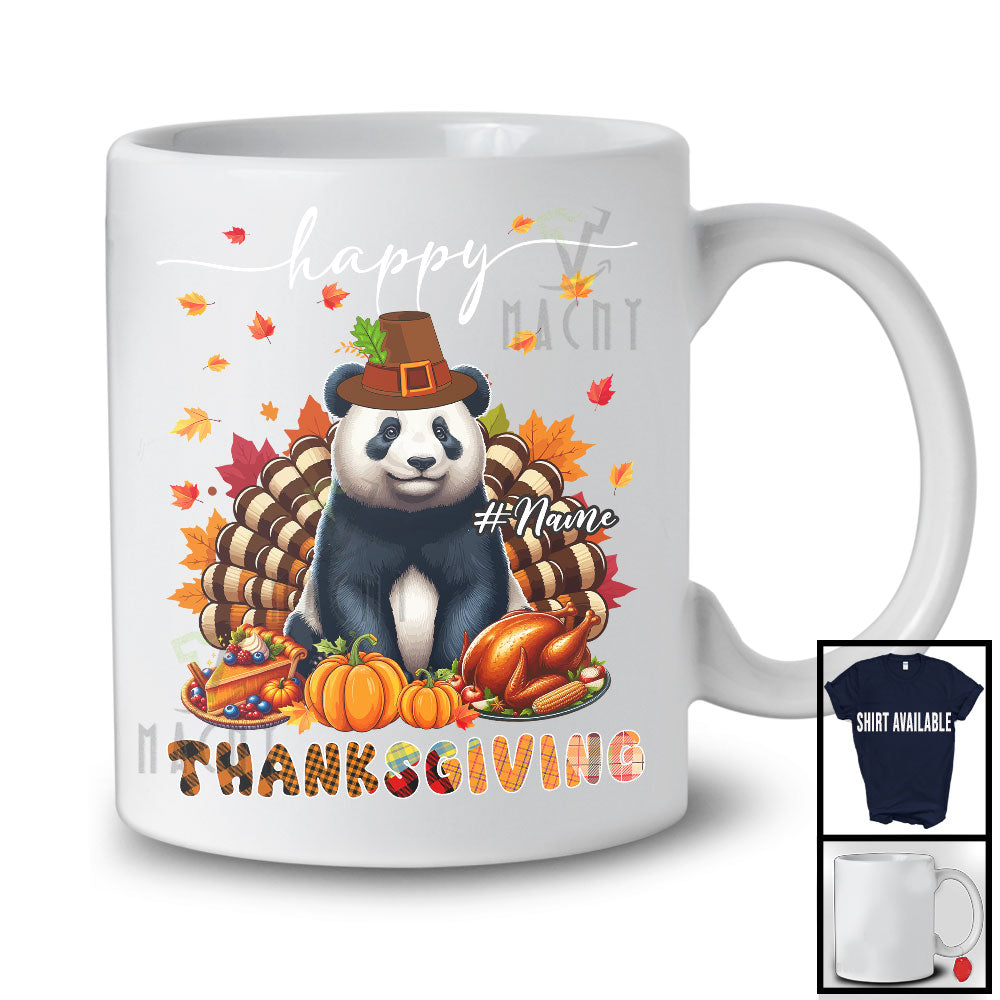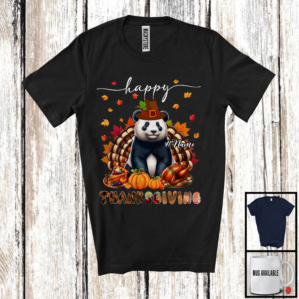 Personalized Custom Name Thanksgiving; Adorable Panda Plaid Turkey Pumpkin; Wild Animal T-Shirt