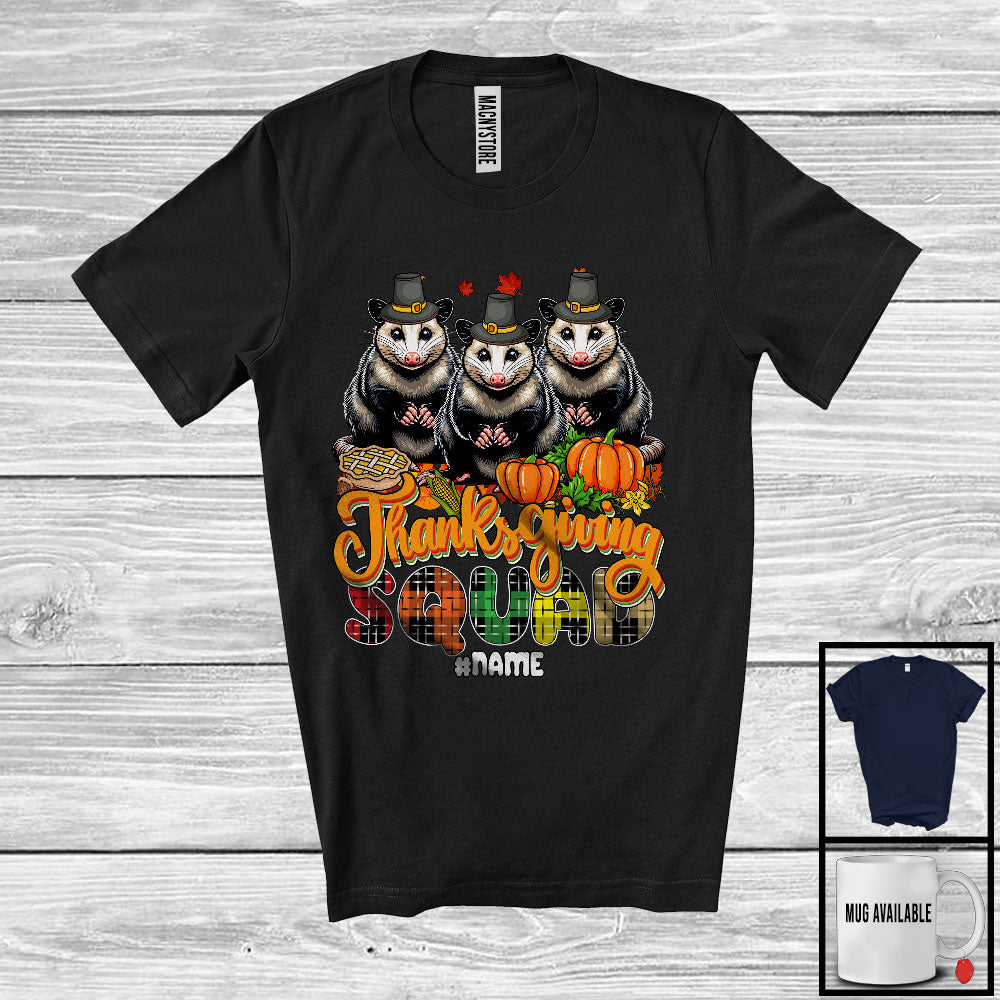 Personalized Custom Name Thanksgiving Squad; Happy Plaid Three Pilgrim Opossums; Animal T-Shirt