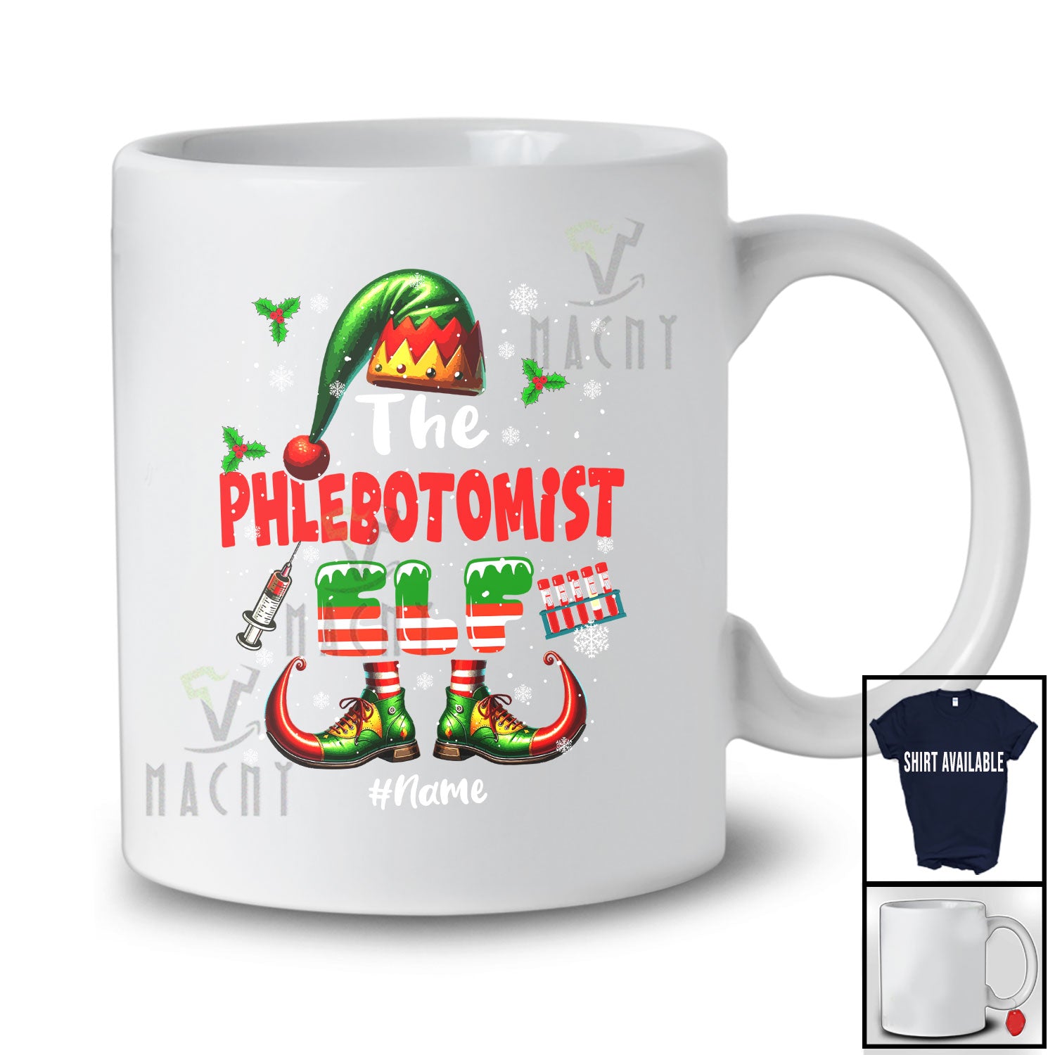 Personalized Custom Name The Phlebotomist Elf; Joyful Christmas Elf Snow Around; Family T-Shirt