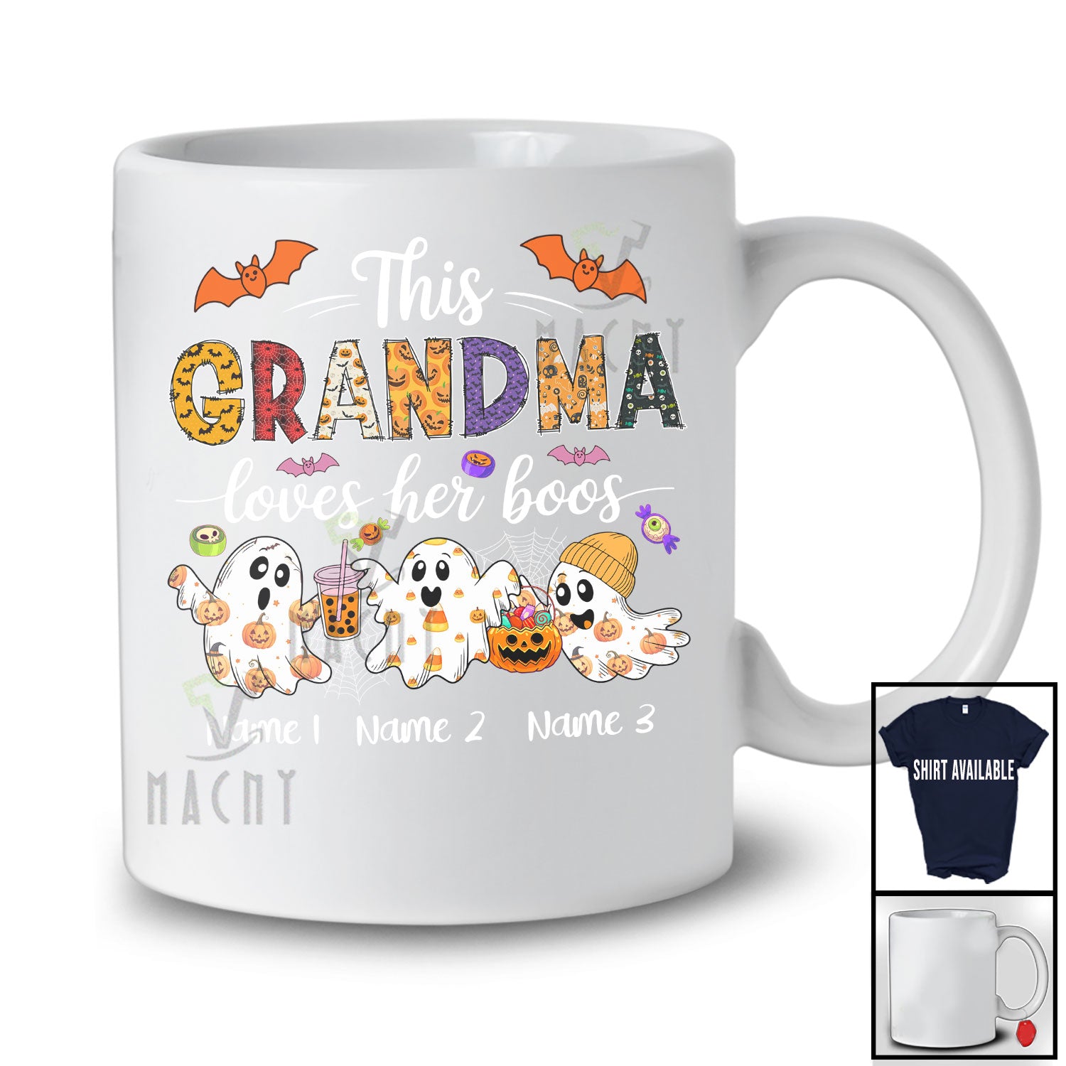 Every product is unique, just like you. If you're looking for a product that fits the mold of your life, the Personalized Custom Name This Grandma Loves Her Boos; Lovely Halloween Three Ghost; Family T-Shirt is for you.