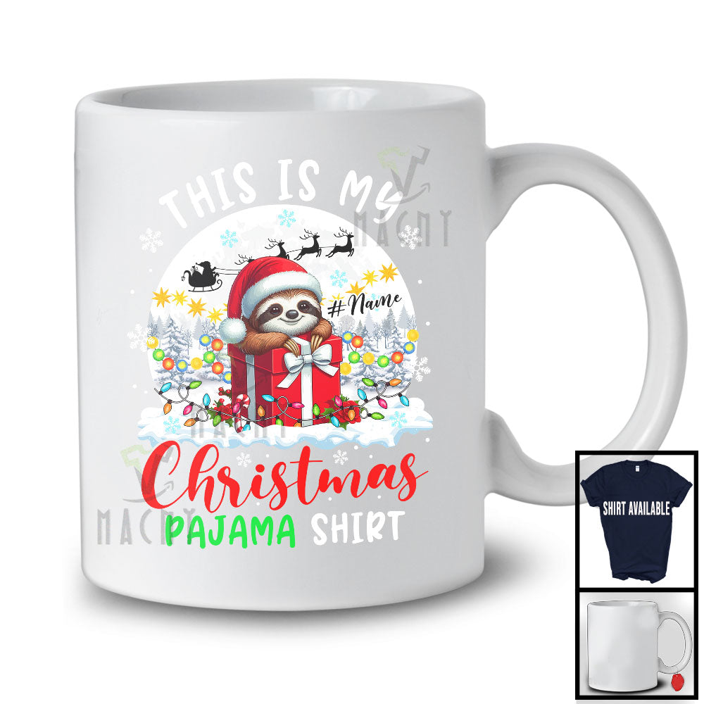 • Personalized Custom Name This Is My Christmas Pajama; Lovely Santa Sloth Lover; X-mas Moon T-Shirt. This cotton t-shirt is a durable staple product with a classic fit. One of the most popular items, it has a relaxed style made for everyday and casual wear.