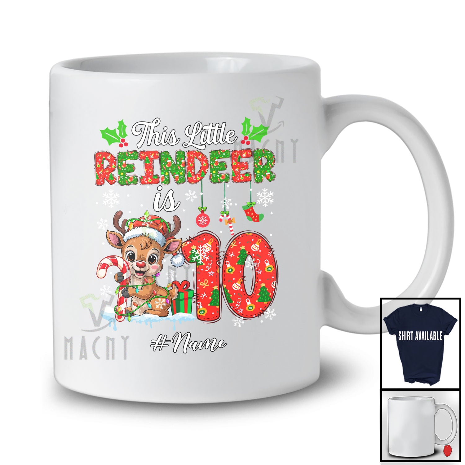 Imagine if you could be satisfied and content with your purchase. That can very much be your reality with the Personalized Custom Name This Little Reindeer Is 10; Joyful 10th Birthday Christmas Family Group T-Shirt.