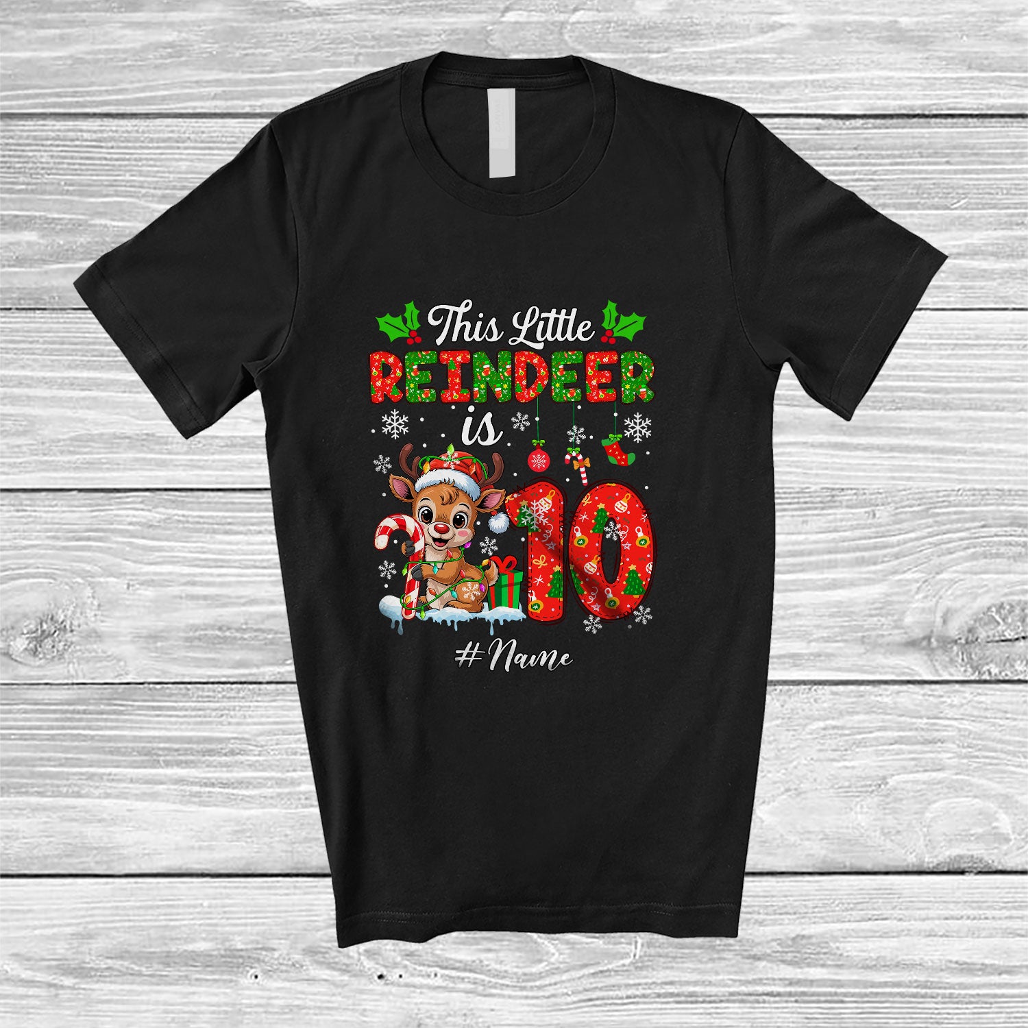 Personalized Custom Name This Little Reindeer Is 10; Joyful 10th Birthday Christmas Family Group T-Shirt