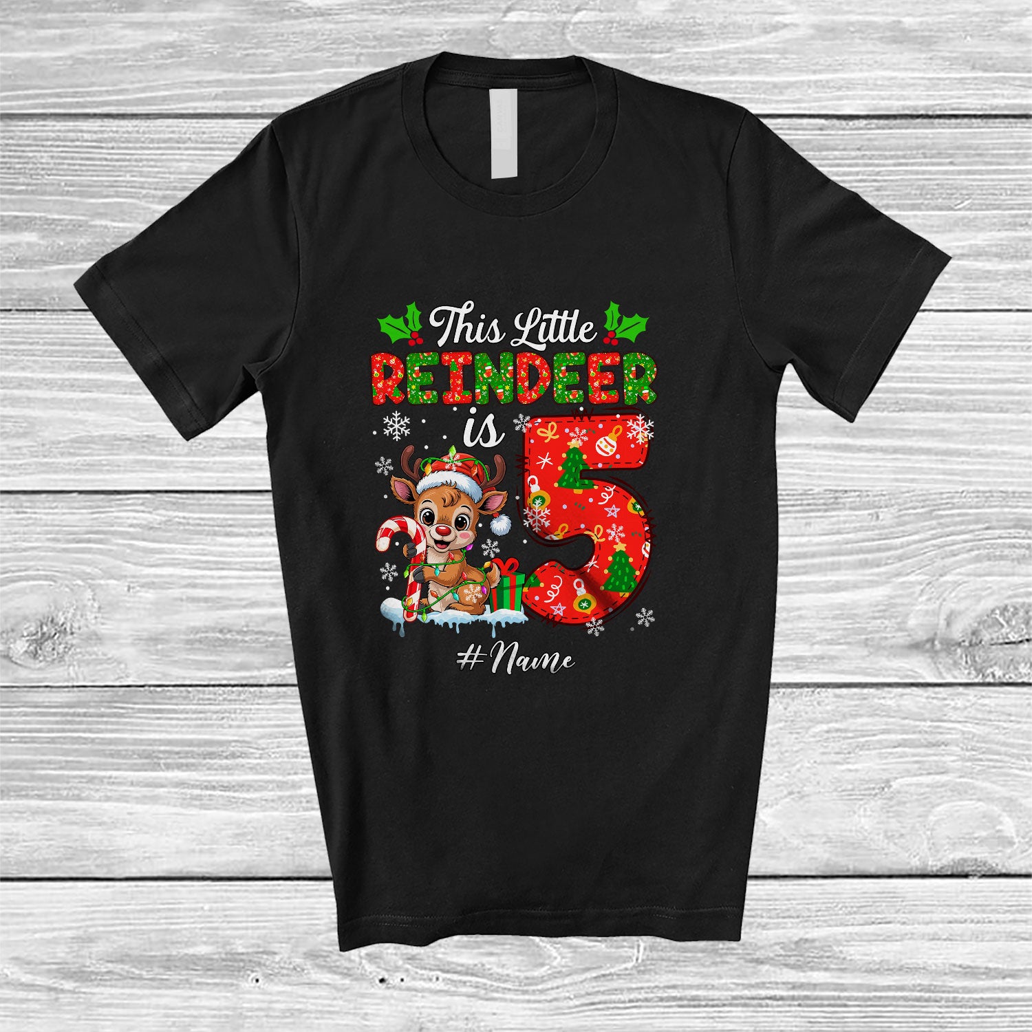The Personalized Custom Name This Little Reindeer Is 5; Joyful 5th Birthday Christmas Family Group T-Shirt is the yin, to your yang. You've found what you're looking for.