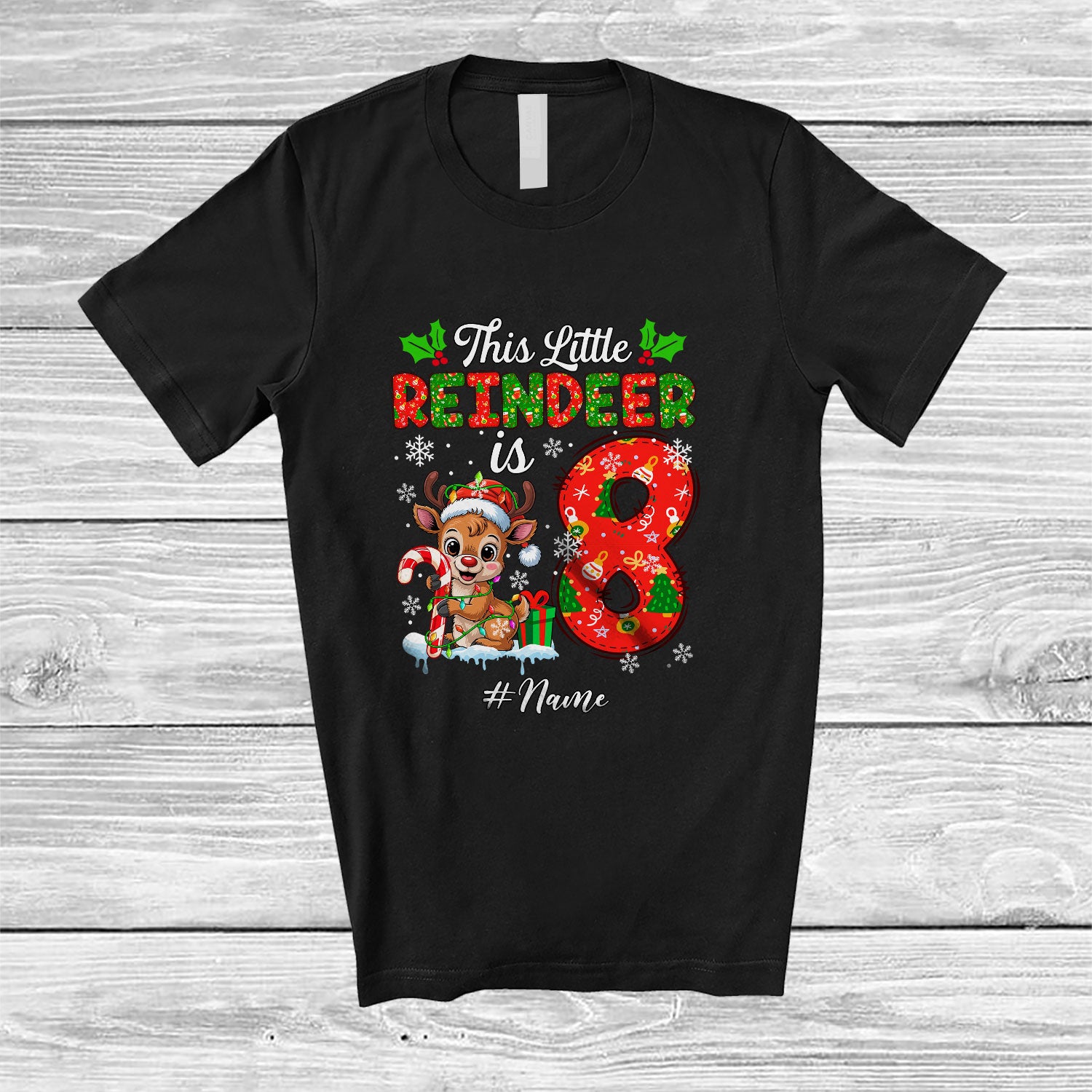 Personalized Custom Name This Little Reindeer Is 8; Joyful 8th Birthday Christmas Family Group T-Shirt