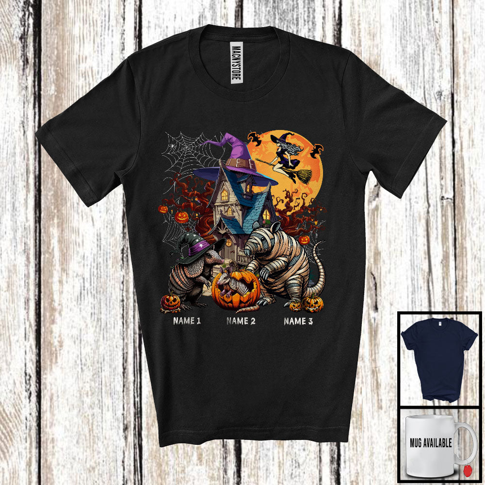Personalized Custom Name Three Mummy Witch Armadillo, Scary Halloween Wild Animal, Pumpkin T-Shirt