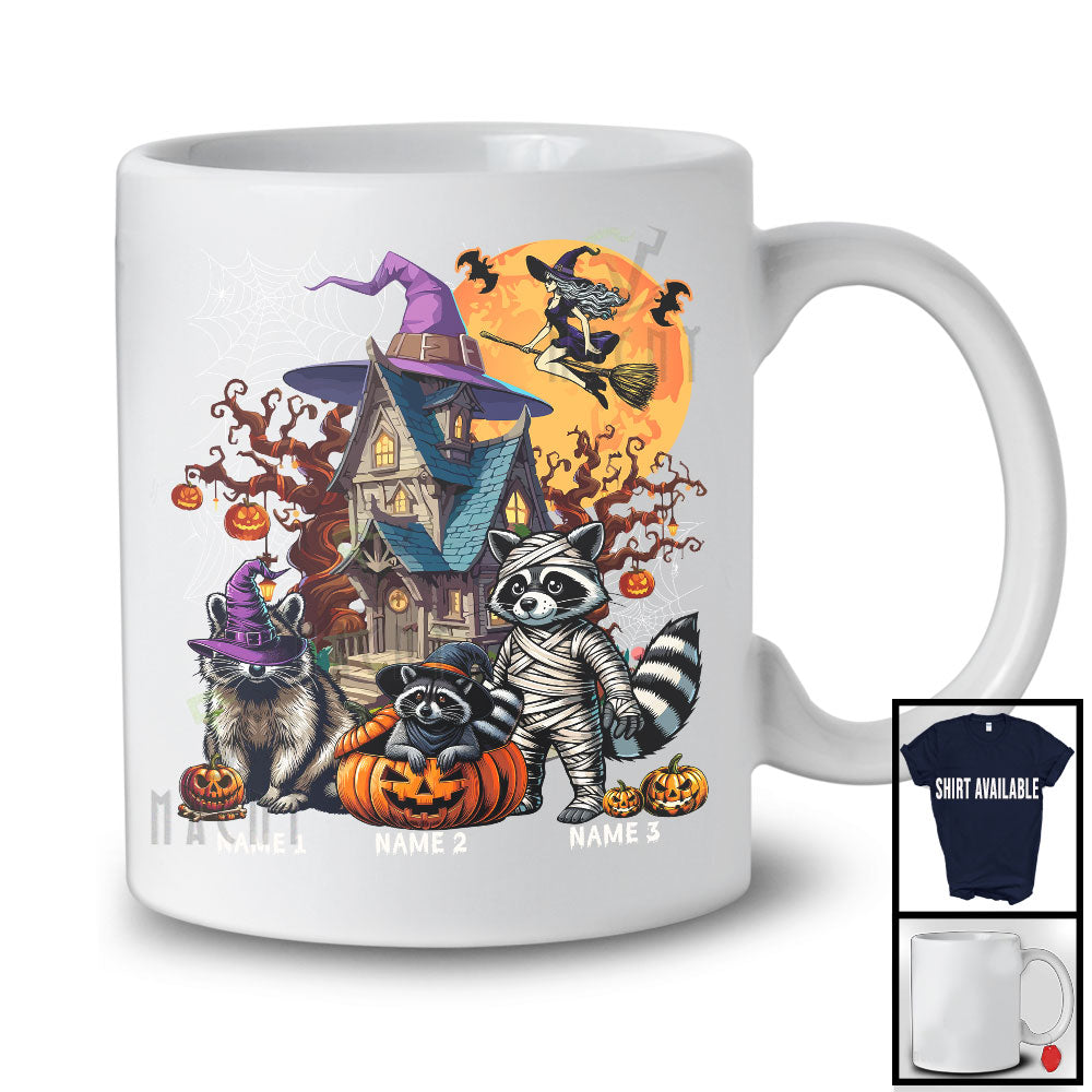 The Personalized Custom Name Three Mummy Witch Raccoon, Scary Halloween Wild Animal, Pumpkin T-Shirt is the product you didn't think you need, but once you have it, something you won't want to live without.