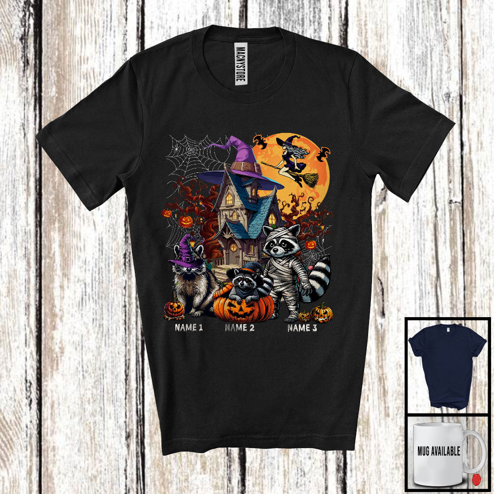 Personalized Custom Name Three Mummy Witch Raccoon, Scary Halloween Wild Animal, Pumpkin T-Shirt