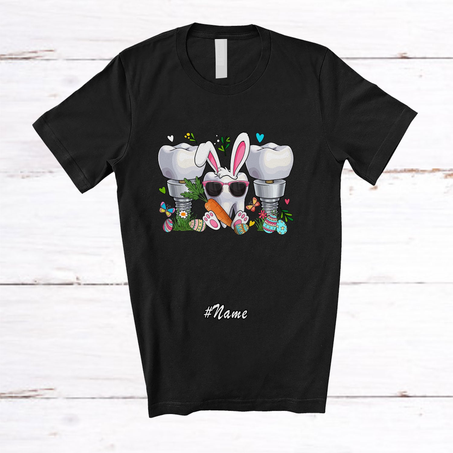 Personalized Custom Name Three Teeth Bunny; Humorous Easter Day Fixed Tooth; Dental Dentist T-Shirt