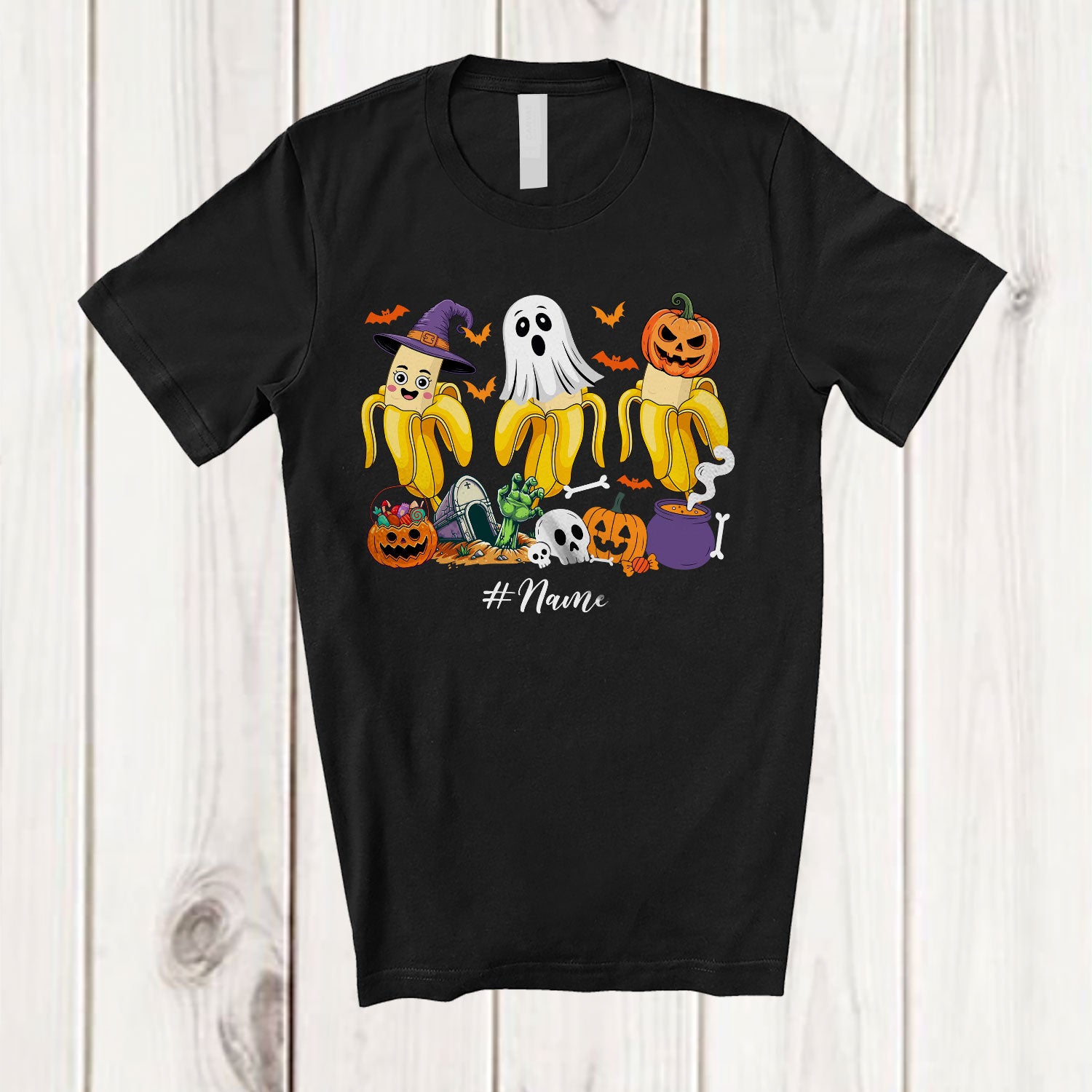 Personalized Custom Name Three Witch Ghost Pumpkin Bananas; Horror Halloween Fruit Vegan T-Shirt