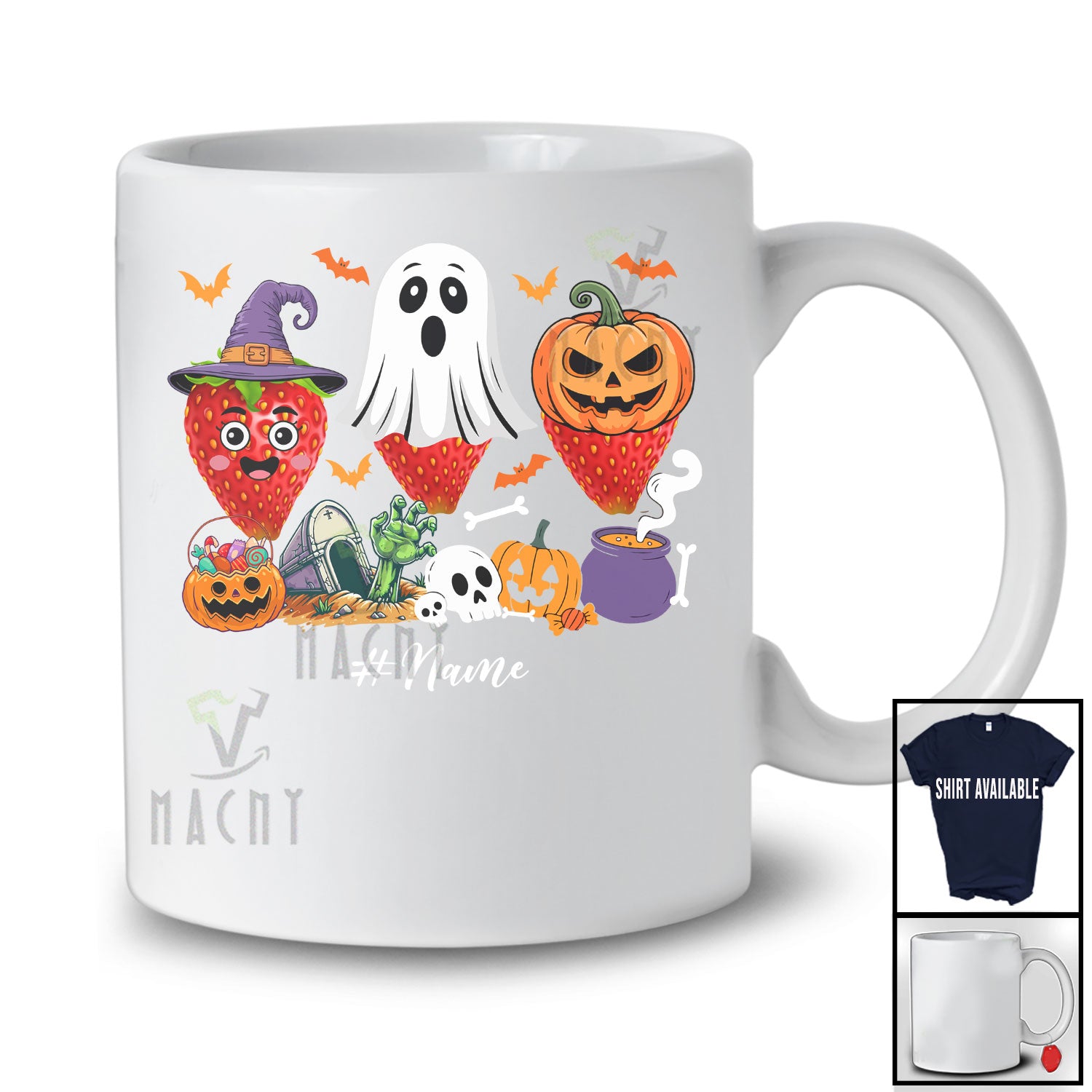 • The Personalized Custom Name Three Witch Ghost Pumpkin Strawberries; Horror Halloween Fruit Vegan T-Shirt was built with people like you in mind. Something to keep you happy. Every. Single. Day.