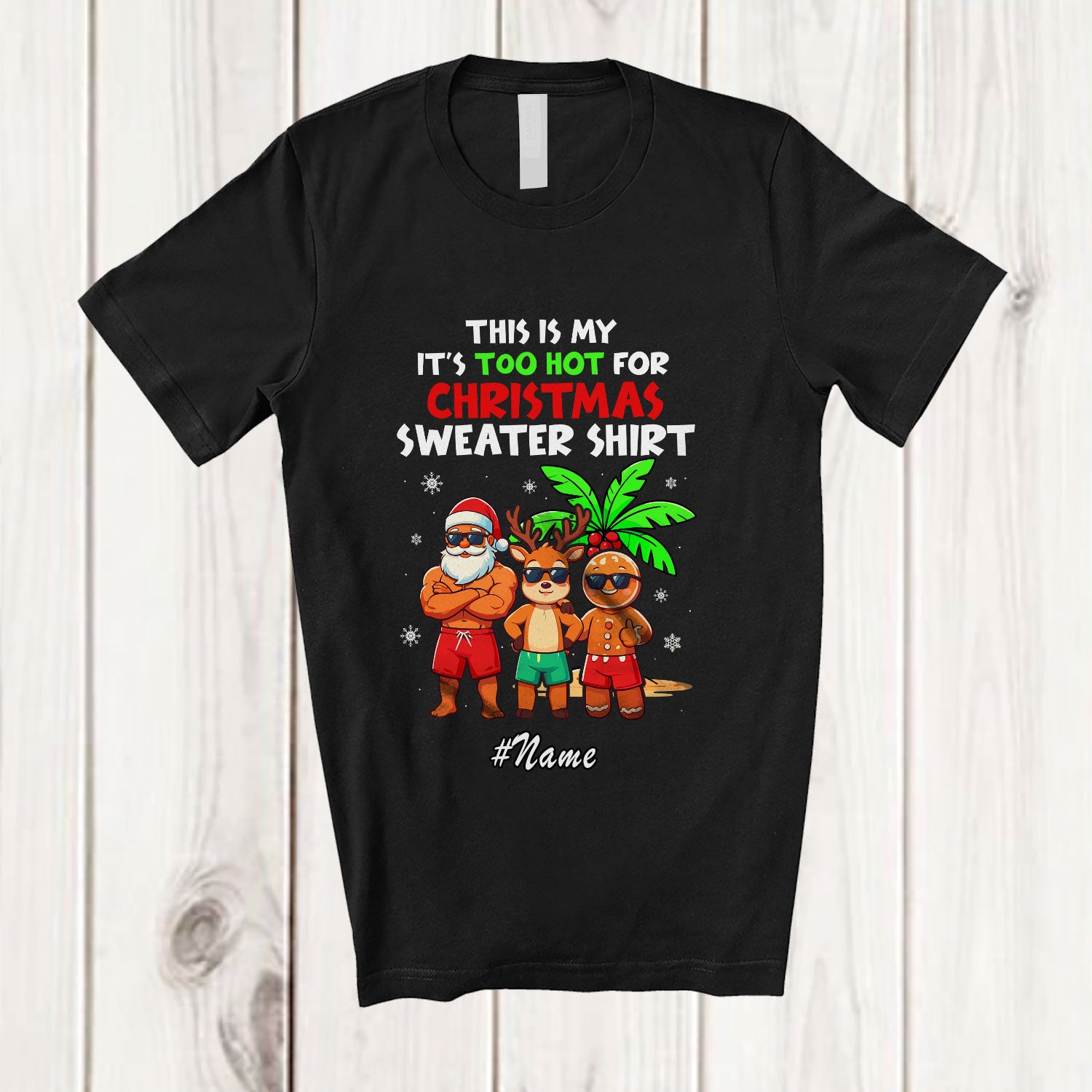 Personalized Custom Name Too Hot For Christmas Sweater; Joyful Santa Reindeer Gingerbread T-Shirt