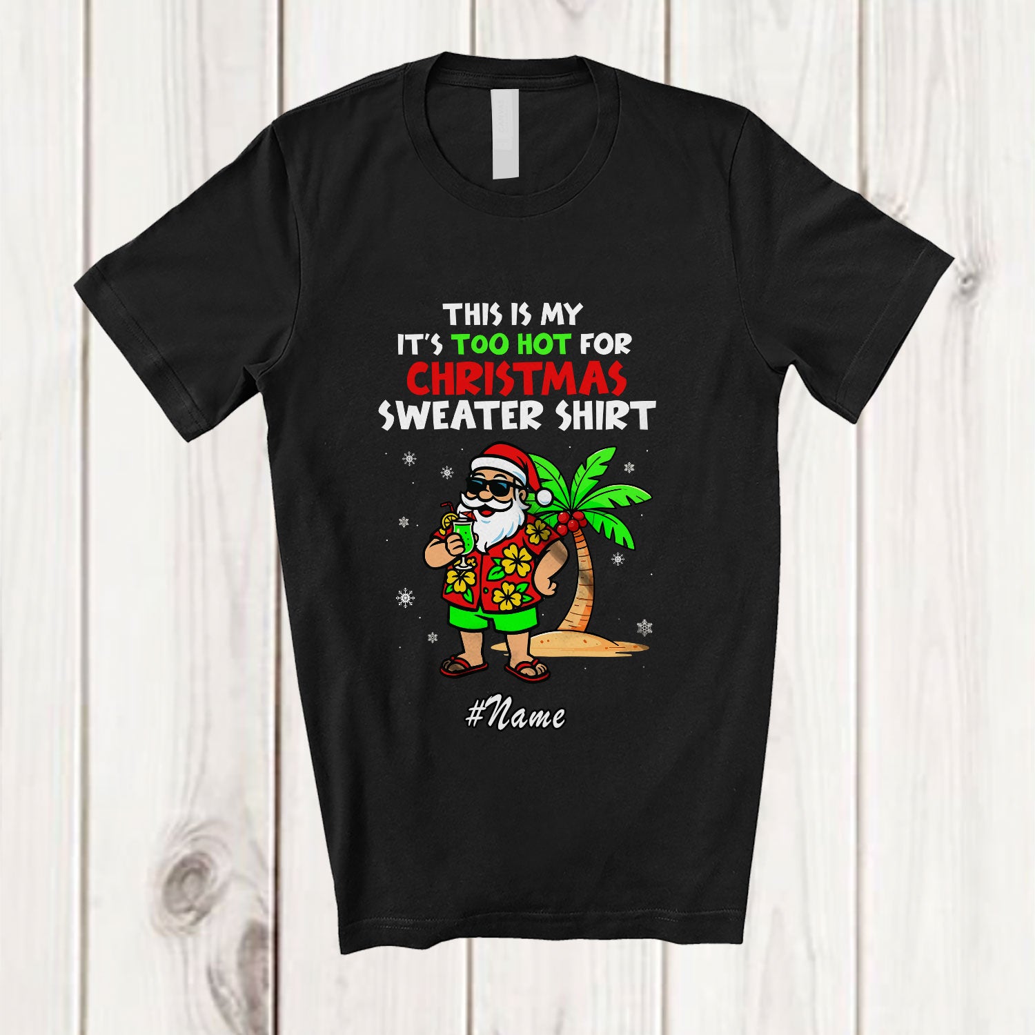 Personalized Custom Name Too Hot For Christmas Sweater Shirt; Joyful Hawaiian Santa Lover T-Shirt
