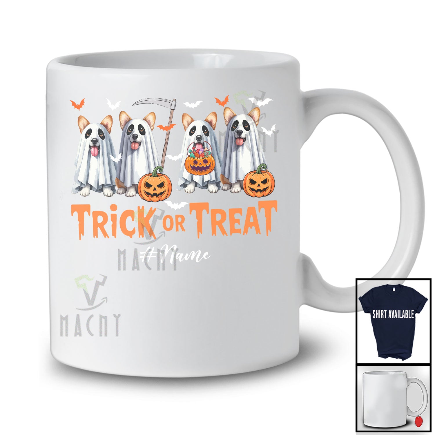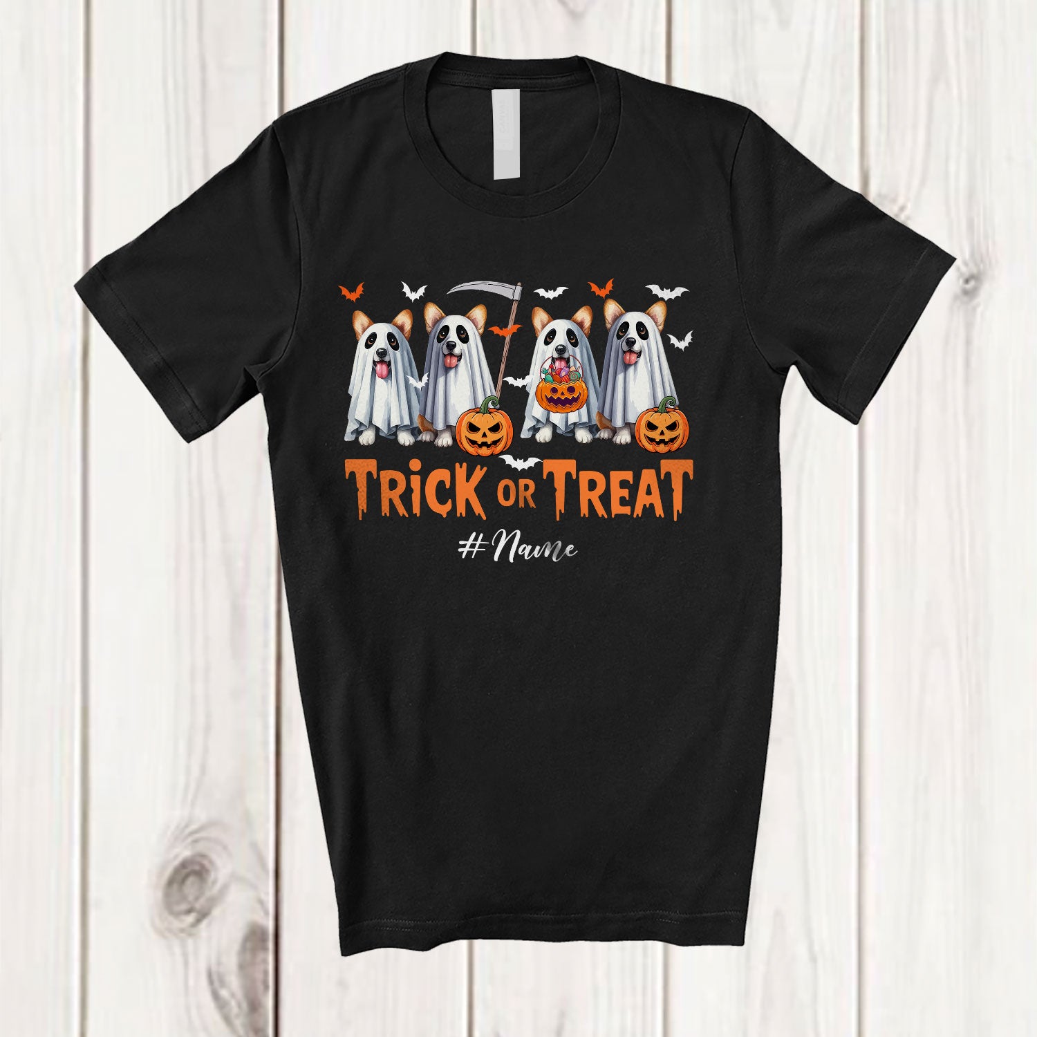Personalized Custom Name Trick Or Treat; Horror Halloween Four Boo Ghost Corgi Owner Lover T-Shirt