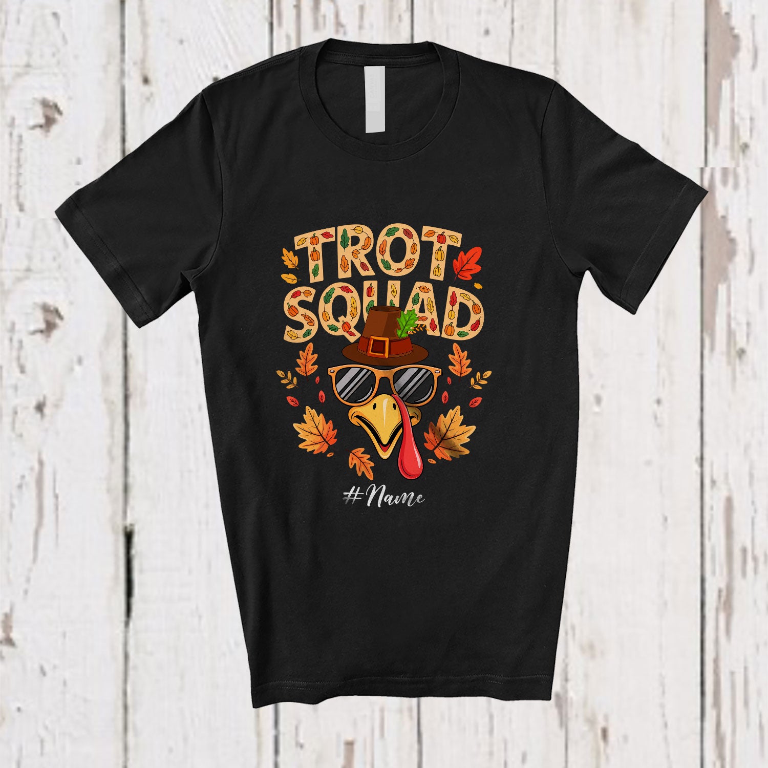 Personalized Custom Name Trot Squad; Humorous Thanksgiving Running Turkey Face; Boys Runner T-Shirt