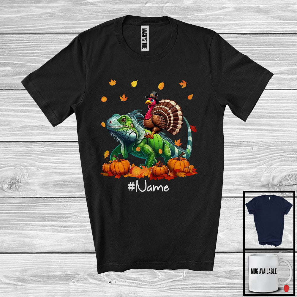 Personalized Custom Name Turkey Riding Iguana, Lovely Thanksgiving Pumpkins, Iguana Lover T-Shirt