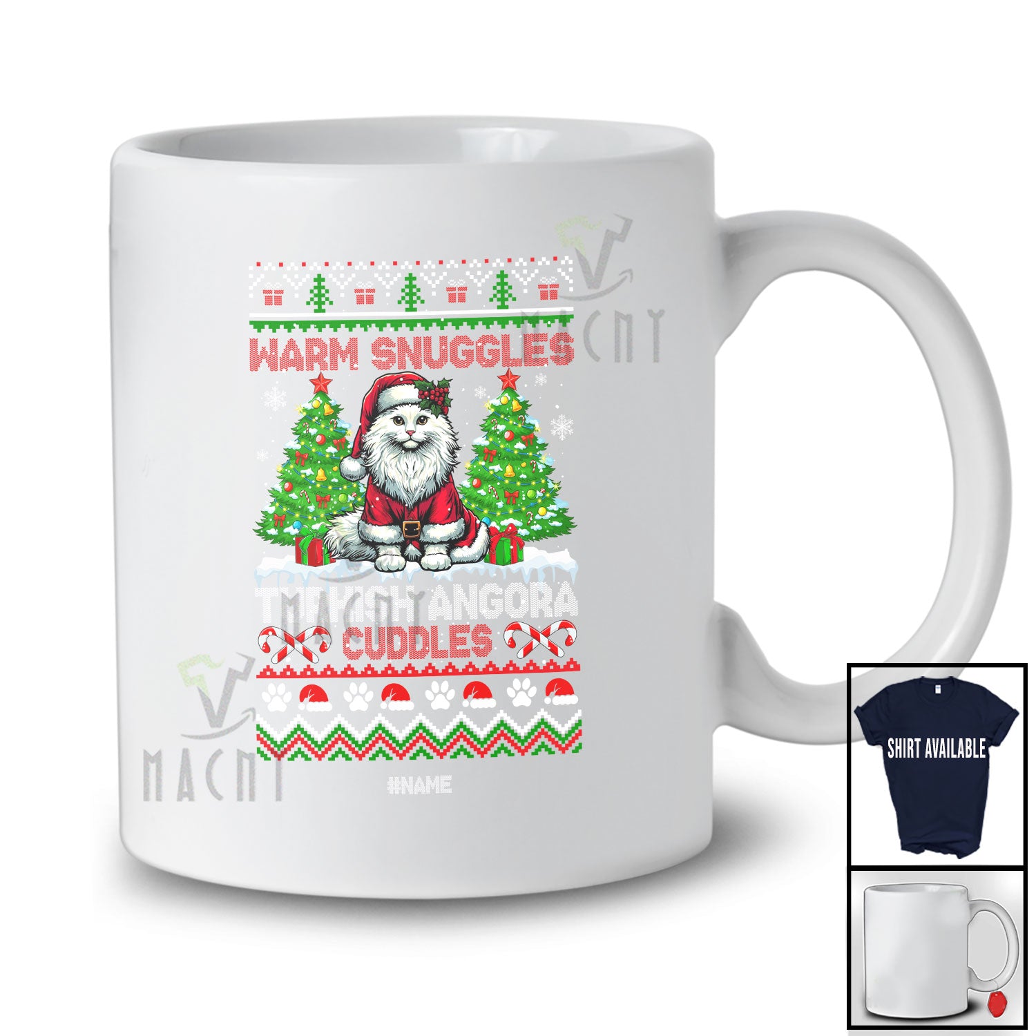 • Personalized Custom Name Warm Snuggles Turkish Angora; Lovely Christmas Tree Sweater T-Shirt. This cotton t-shirt is a durable staple product with a classic fit. One of the most popular items, it has a relaxed style made for everyday and casual wear.
