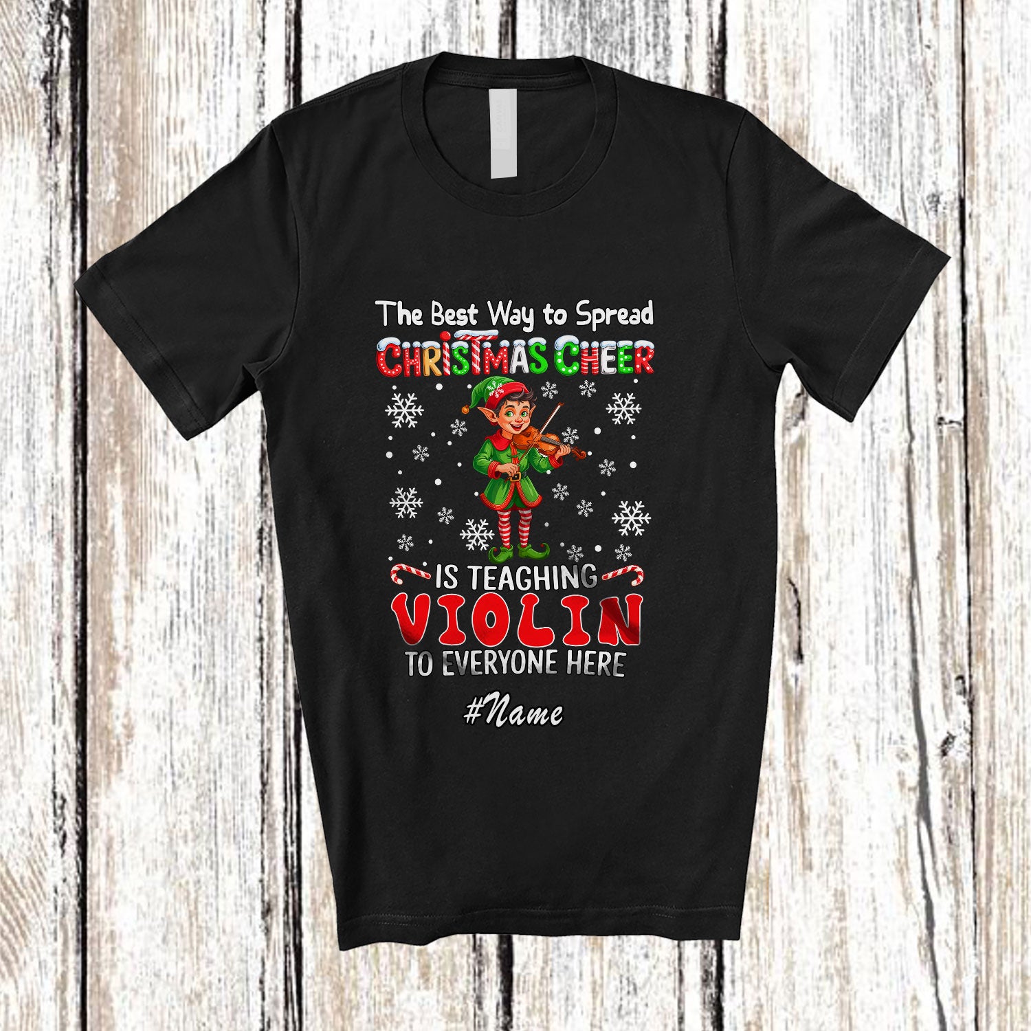 Personalized Custom Name Way Spread Christmas Cheer Teaching Violin; Proud Teacher Elf T-Shirt