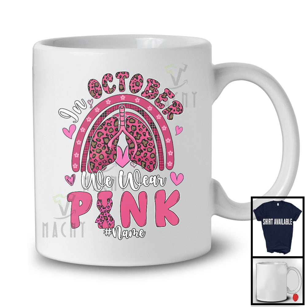 Personalized Custom Name We Wear Pink; Lovely Breast Cancer Ribbon; Respiratory Therapist Rainbow T-Shirt