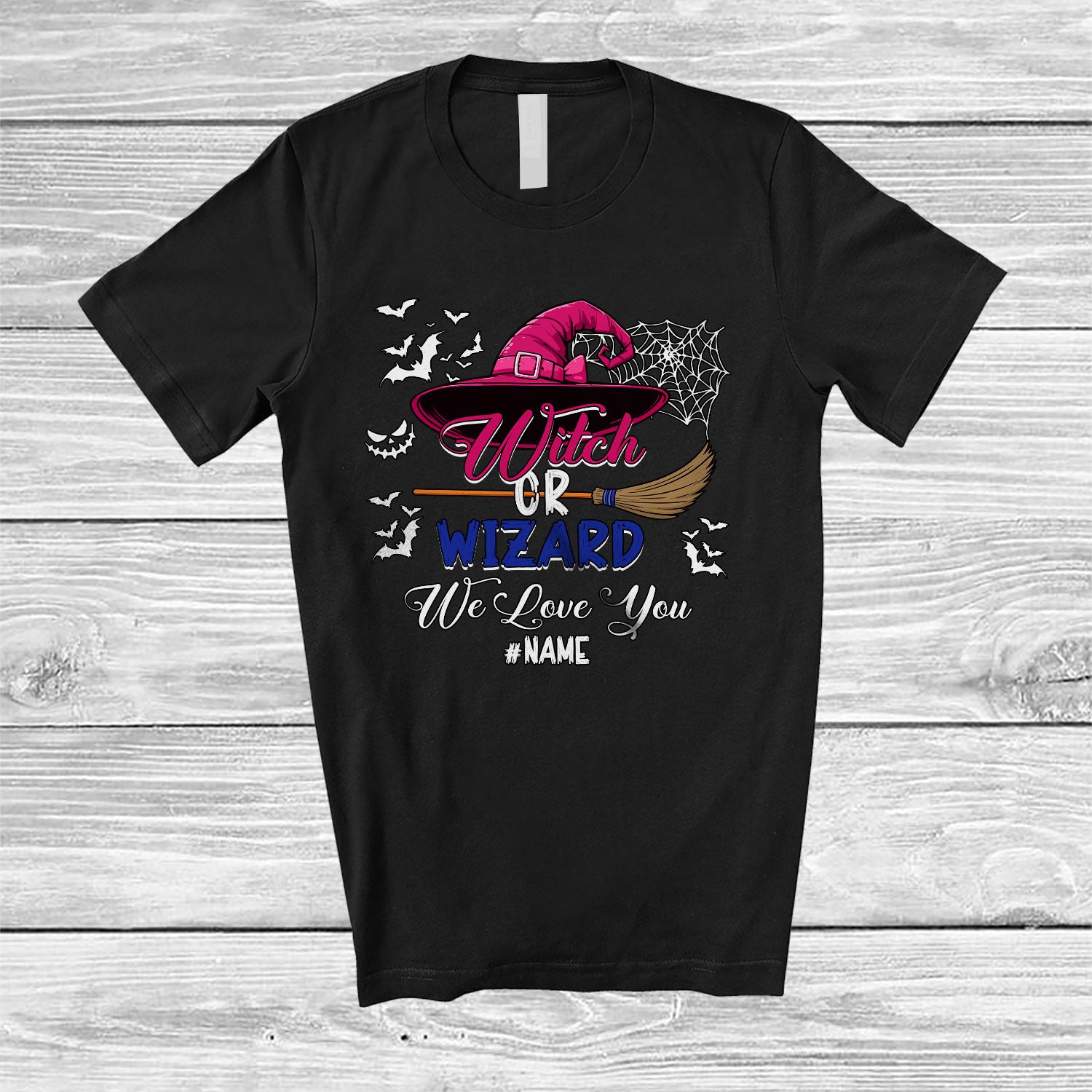 Personalized Custom Name Witch Or Wizard; Humorous Halloween Gender Reveal Witch; Family T-Shirt