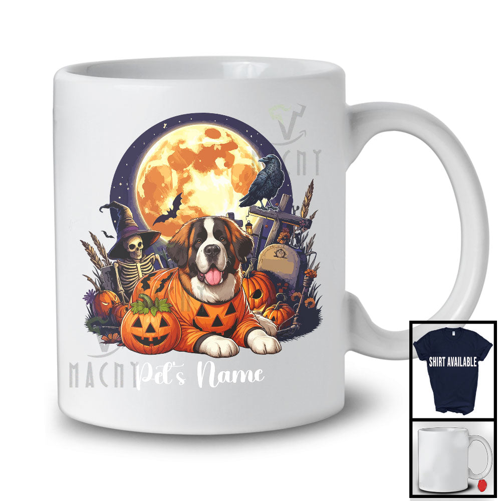 new MacnyStore - Personalized Custom Puppy's Name St. Bernard Dog, Lovely Halloween Skeleton Pumpkins T-Shirt – Macnystore