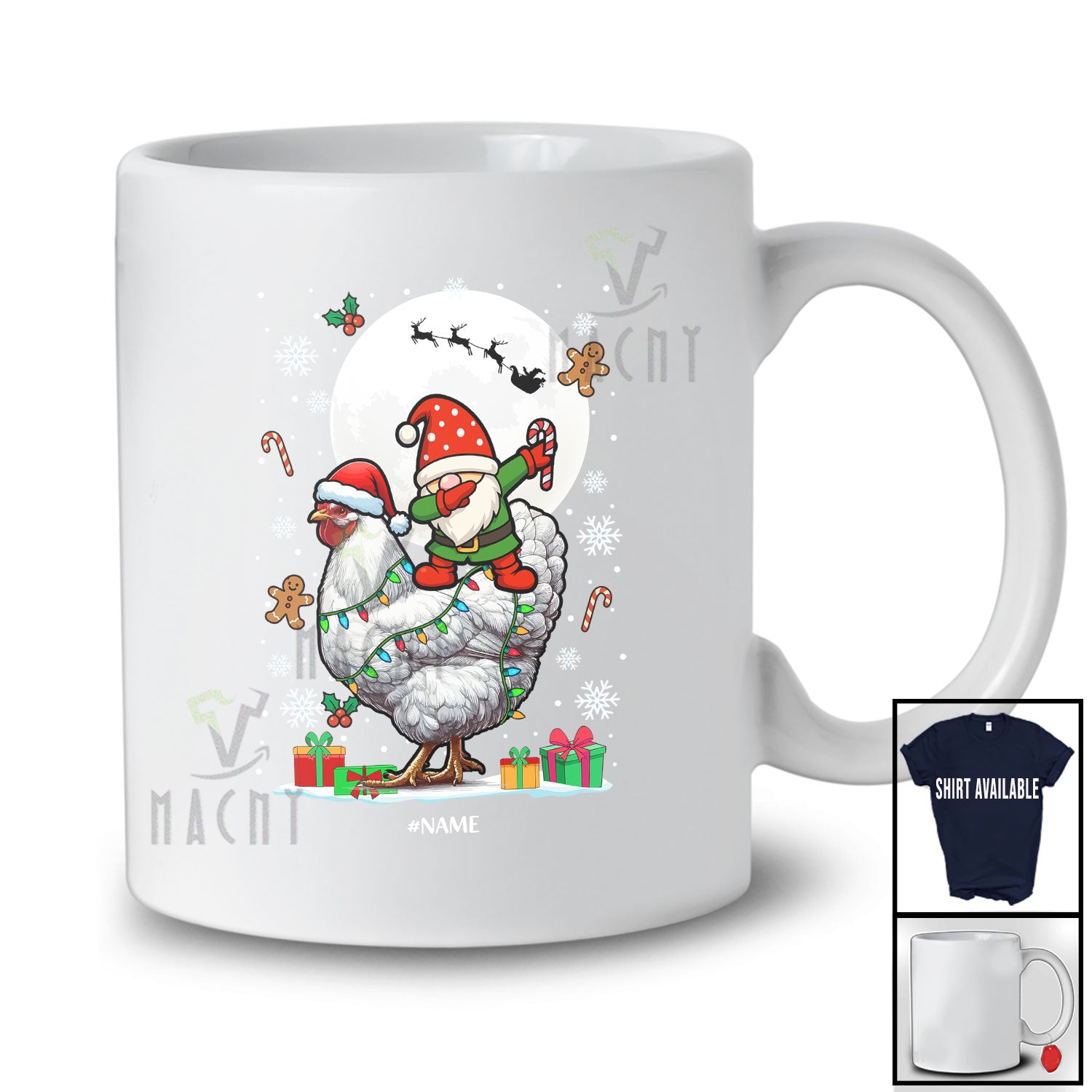 Personalized Dabbing Gnome Riding Chicken; Amusing Christmas Lights Custom Name Farmer T-Shirt. This cotton t-shirt is a durable staple product with a classic fit. One of the most popular items, it has a relaxed style made for everyday and casual wear.