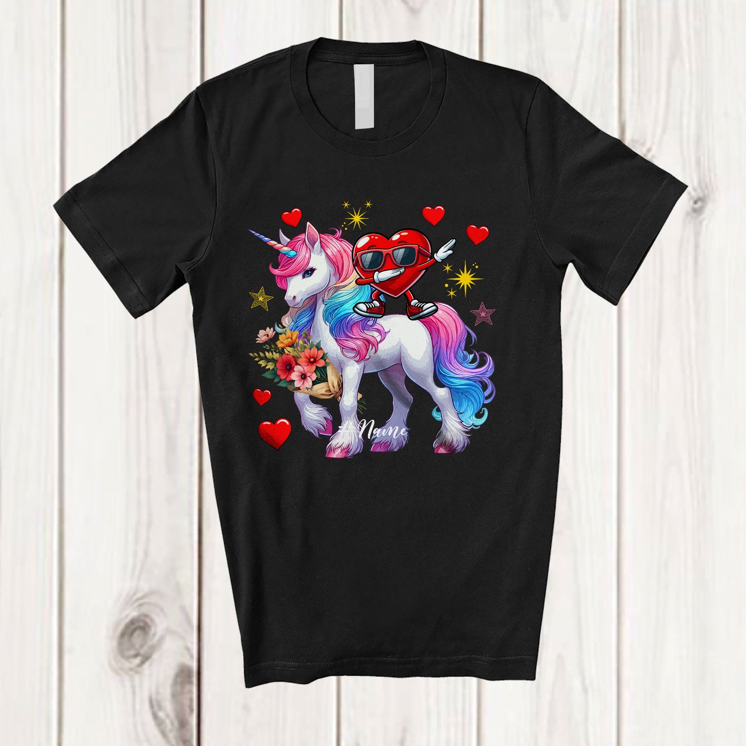 new MacnyStore - Personalized Dabbing Heart Riding Unicorn; Fantastic Valentine Hearts Flowers; Custom Name Couple T-Shirt – Macnystore
