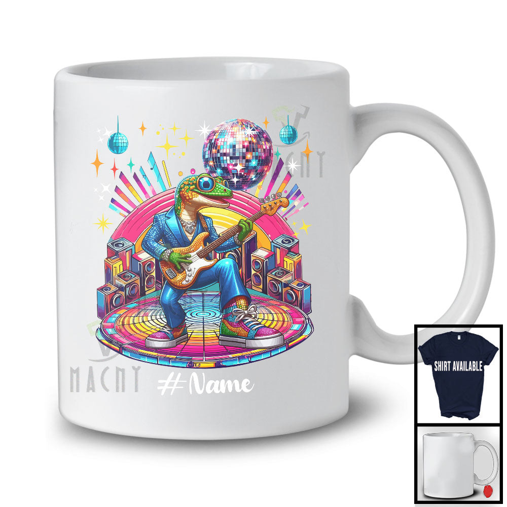 Personalized Disco Gecko Playing Guitar; Joyful Custom Name Guitarist Gecko; Music Lover T-Shirt